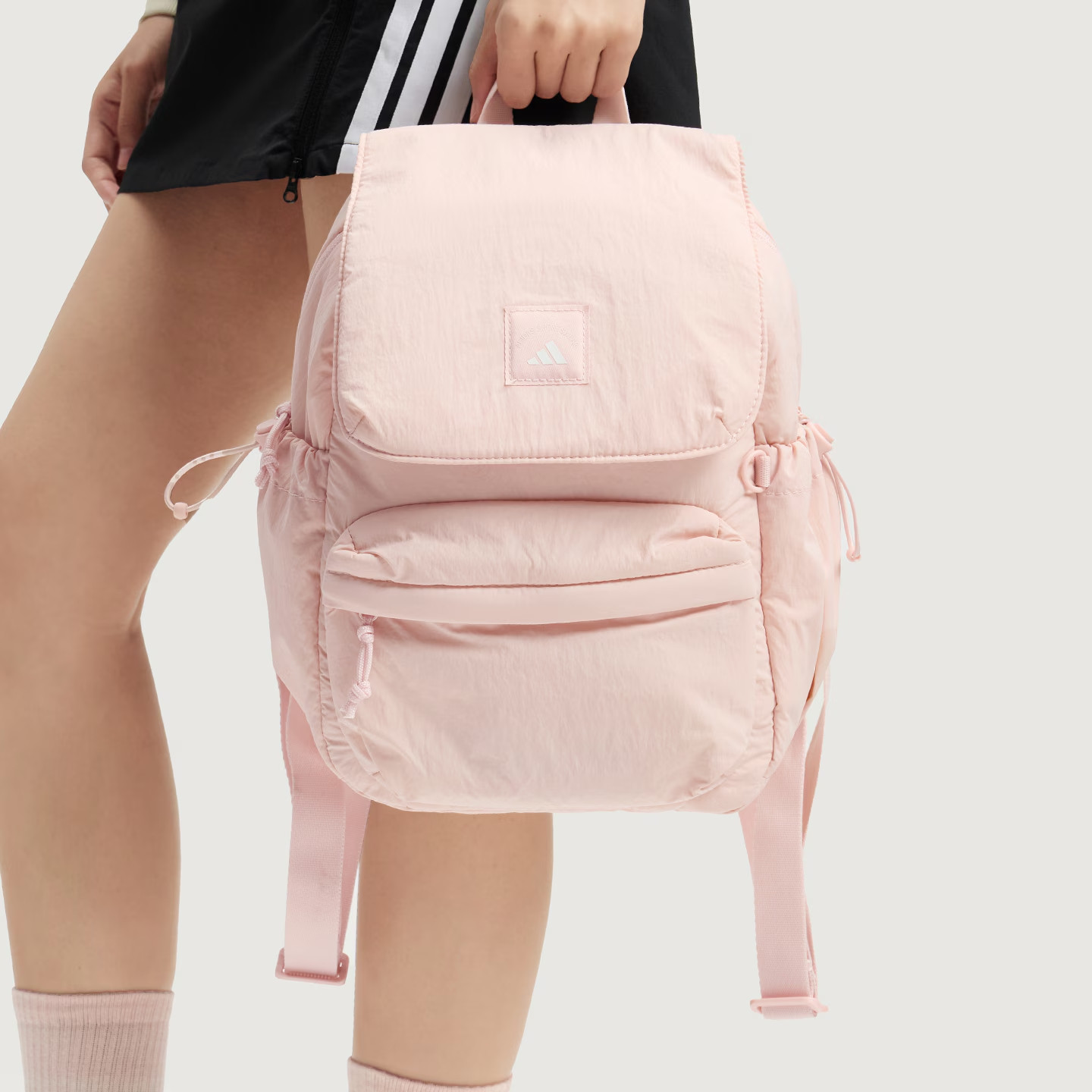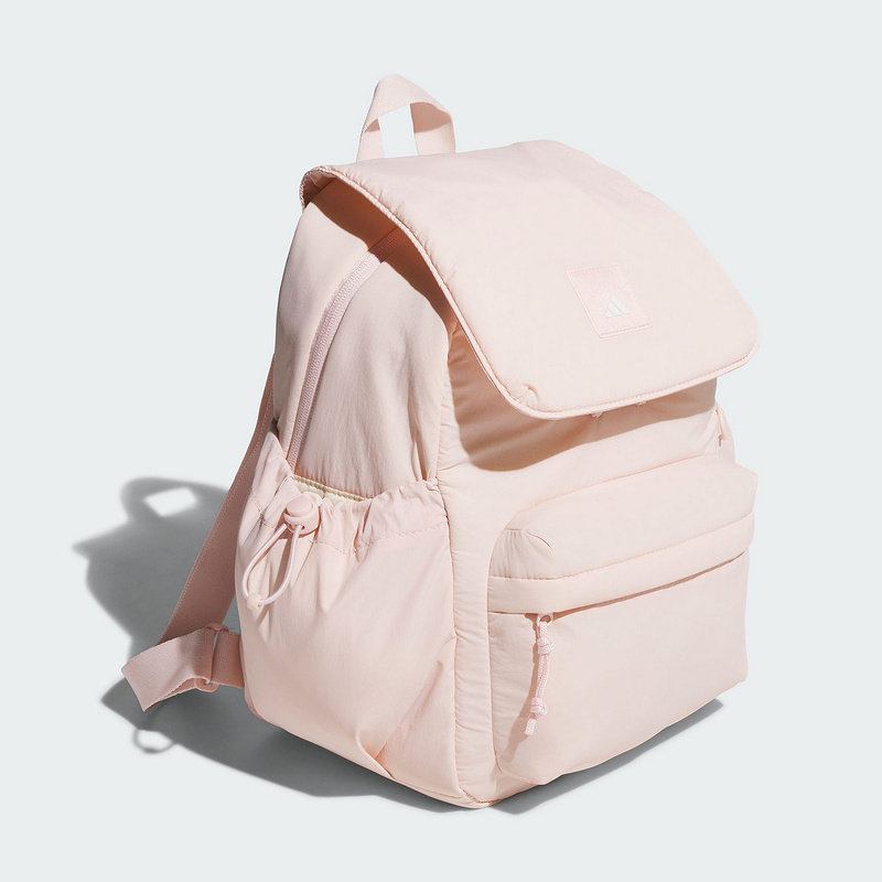 adidas阿迪达斯女子实用翻盖多口袋运动双肩背包浅粉色书包KF2490