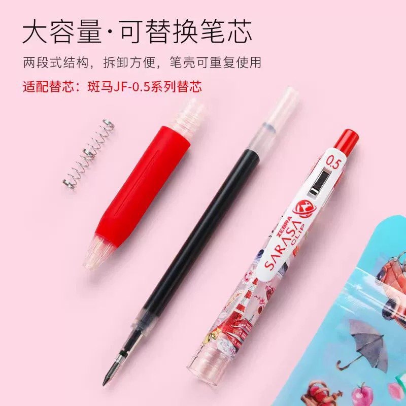 日本ZEBRA斑马官方旗舰店官网直营JJ77中性笔按动式可换芯JF-0.5/MJF替芯JJ15黑色笔芯套装签字笔记圆珠笔