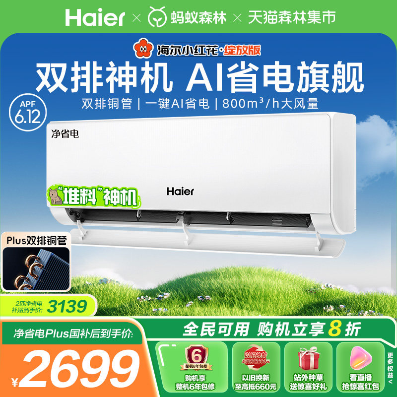 【堆料神机】海尔空调净省电Plus小红花家用官方1.5匹新一级挂机