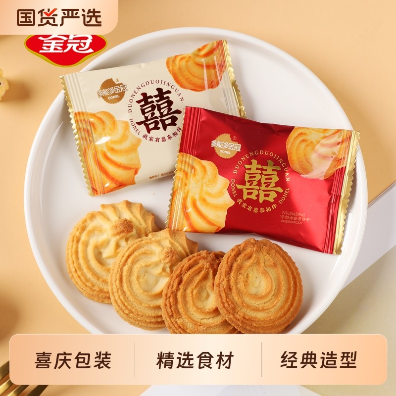 金冠双喜曲奇饼干结婚专用喜饼喜糖果大气伴手礼散装高档包装送礼