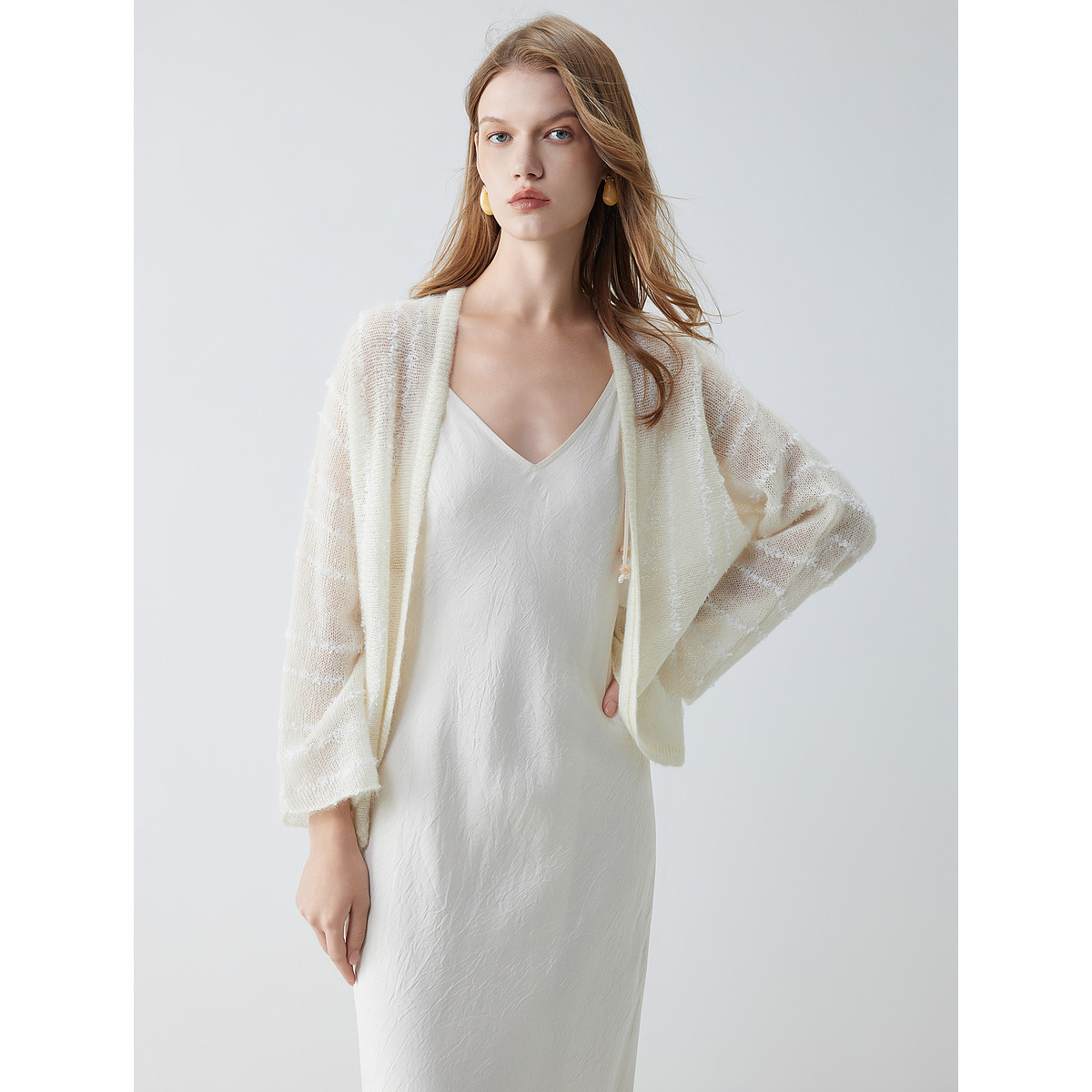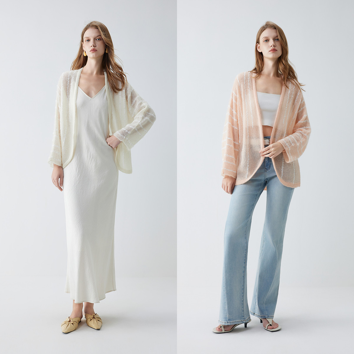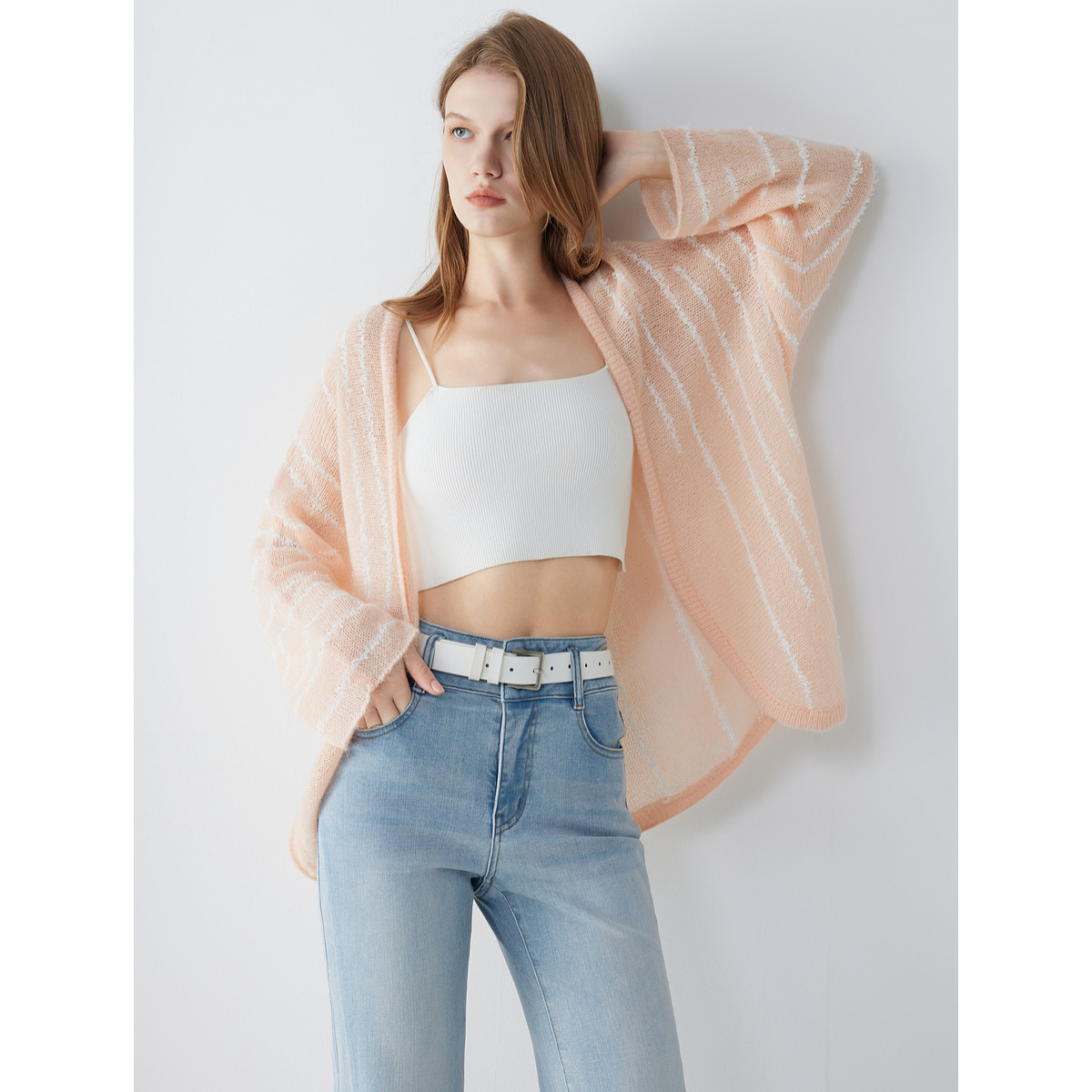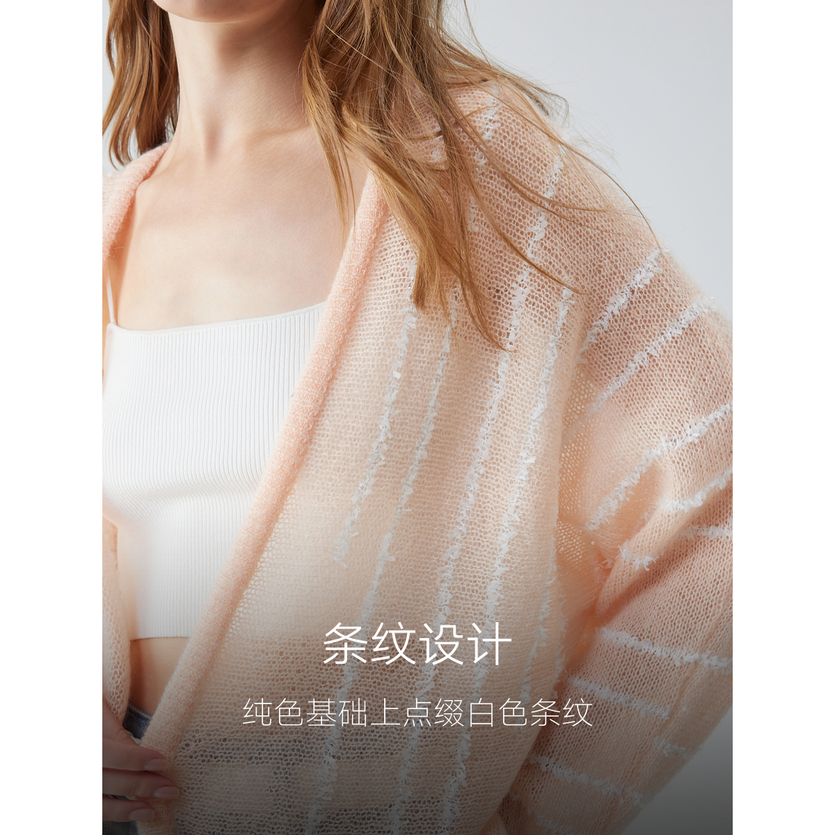 【商场同款】ELLE条纹马海毛针织开衫女2025秋季新款绵羊休闲毛衣