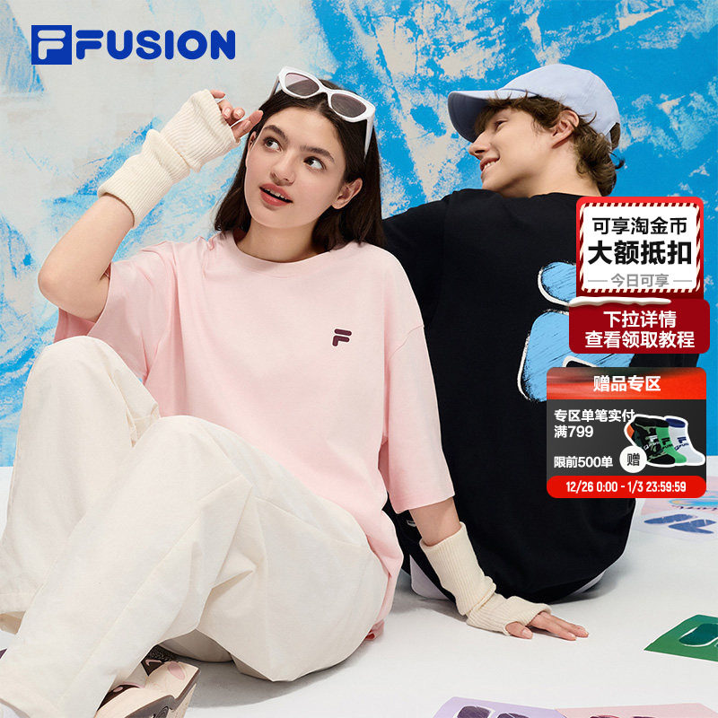 FILA FUSION斐乐潮牌短袖T恤女2026春季新款多彩宽松纯棉男子上衣
