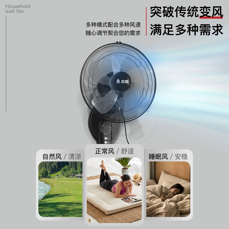 志高挂壁扇家用壁挂式电风扇餐厅宿舍挂扇摇头墙扇强力工业壁挂扇