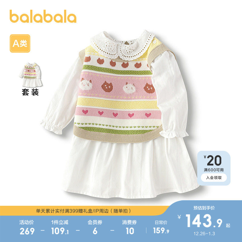 巴拉巴拉童装儿童宝宝套装女童连衣裙子两件套2025春秋装新款针织