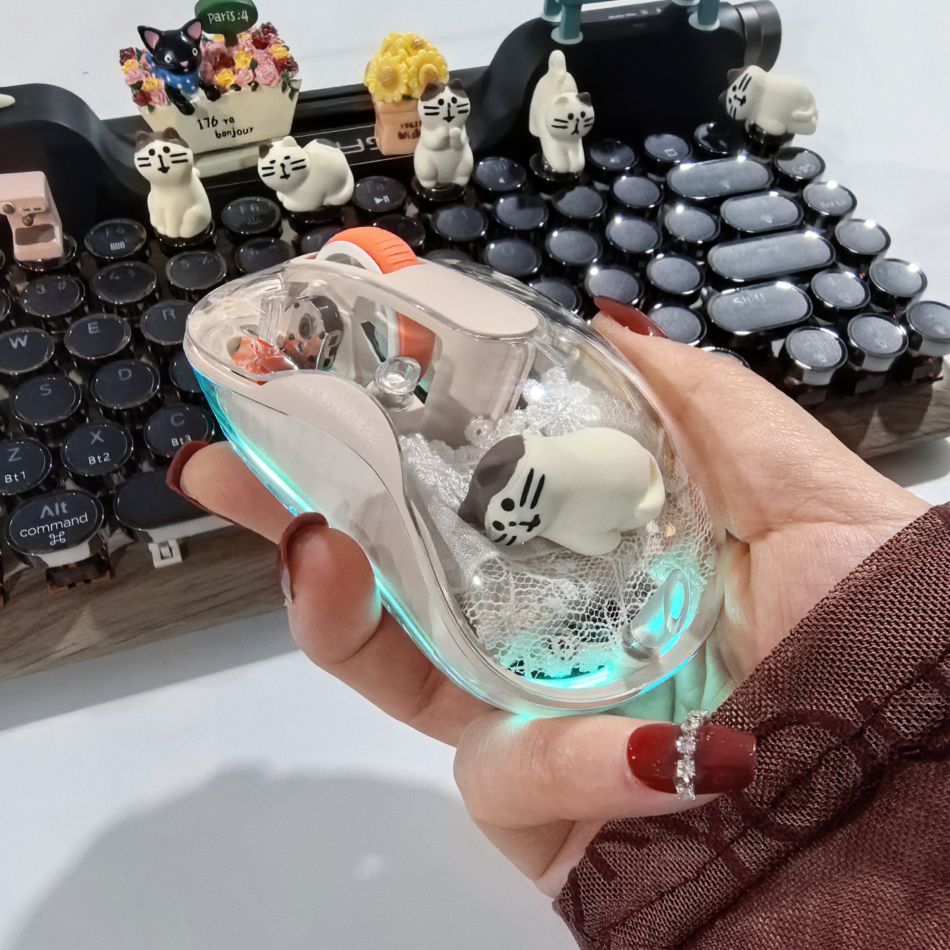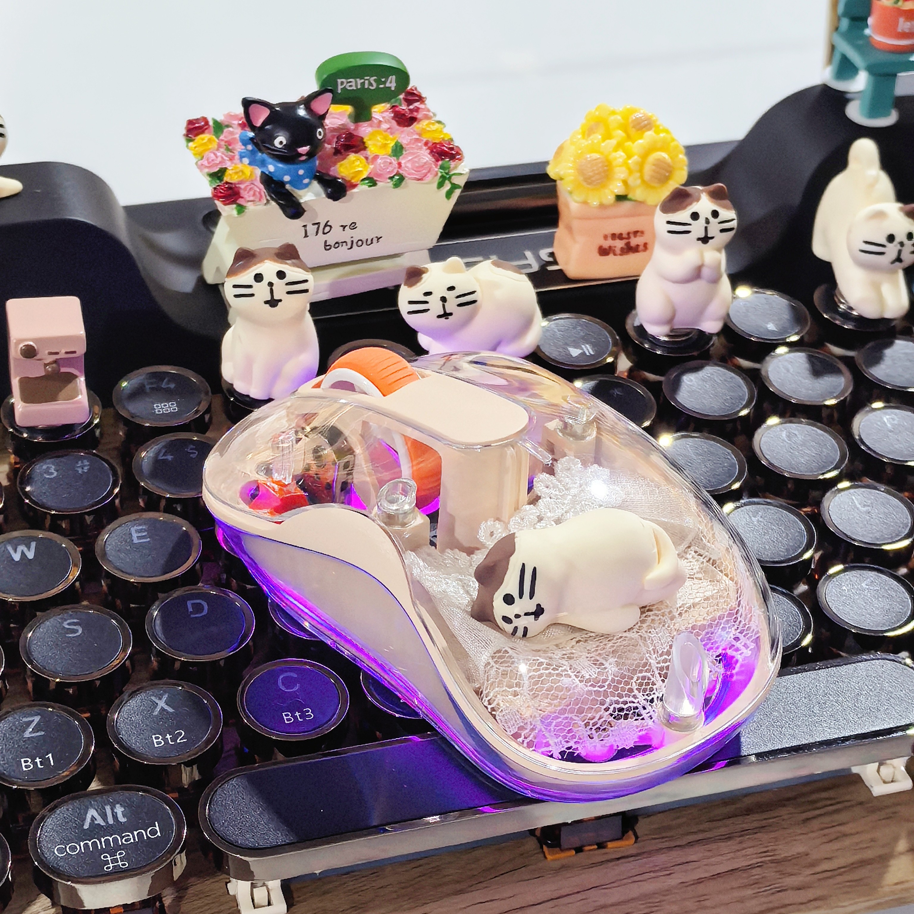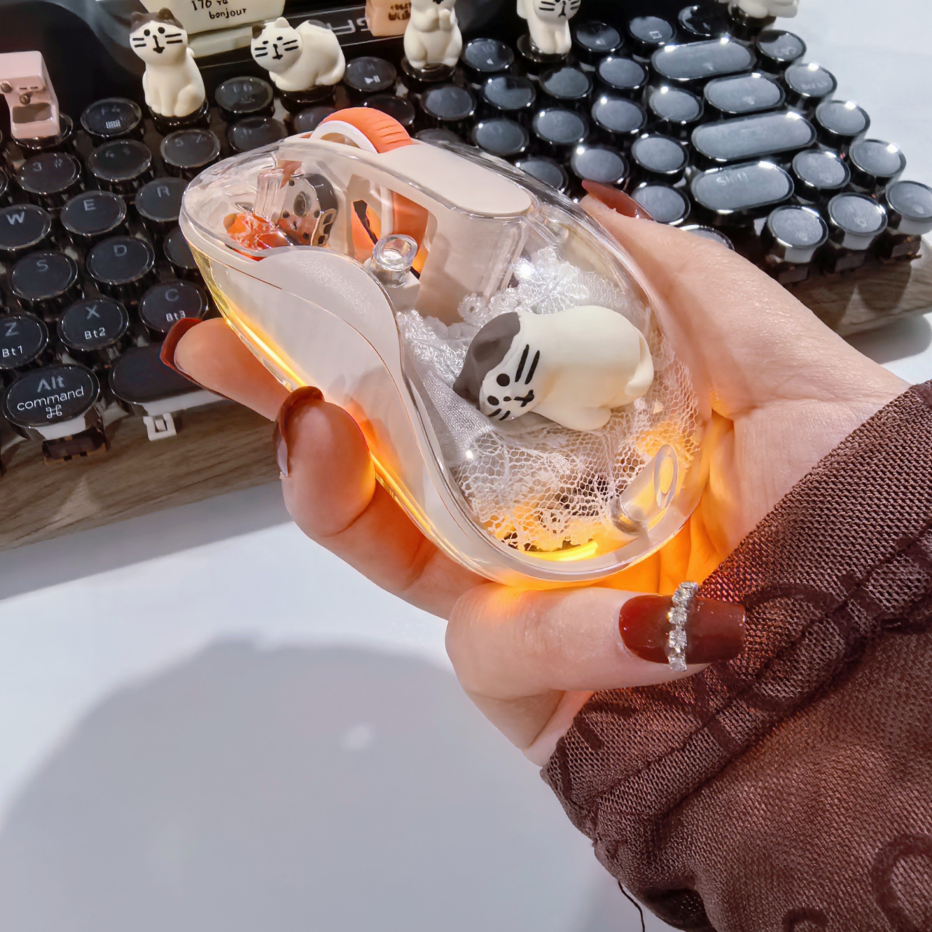 新款悠闲的猫咪玩偶鼠标可爱卡通磁吸透明笔记本无线公仔蓝牙静音