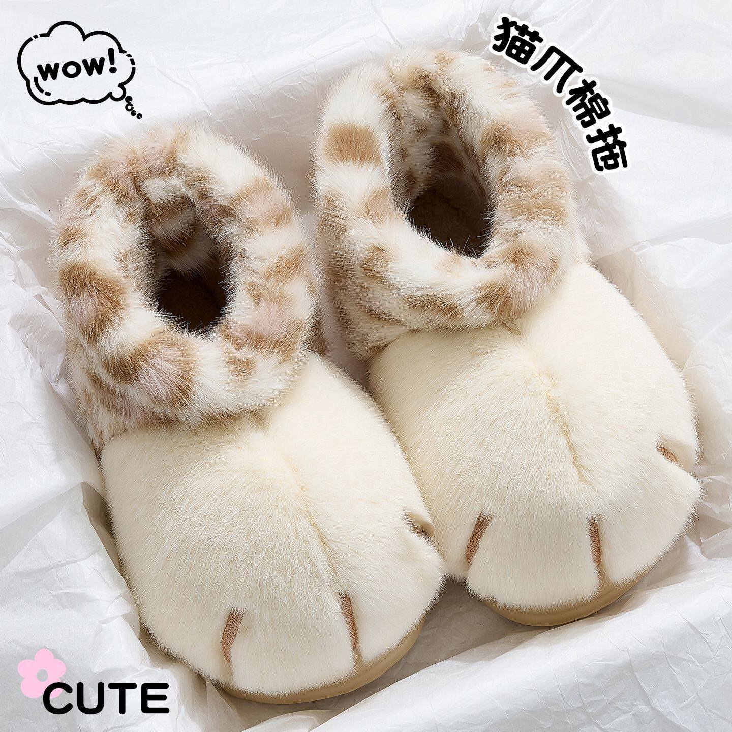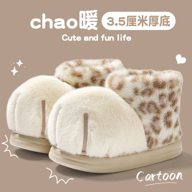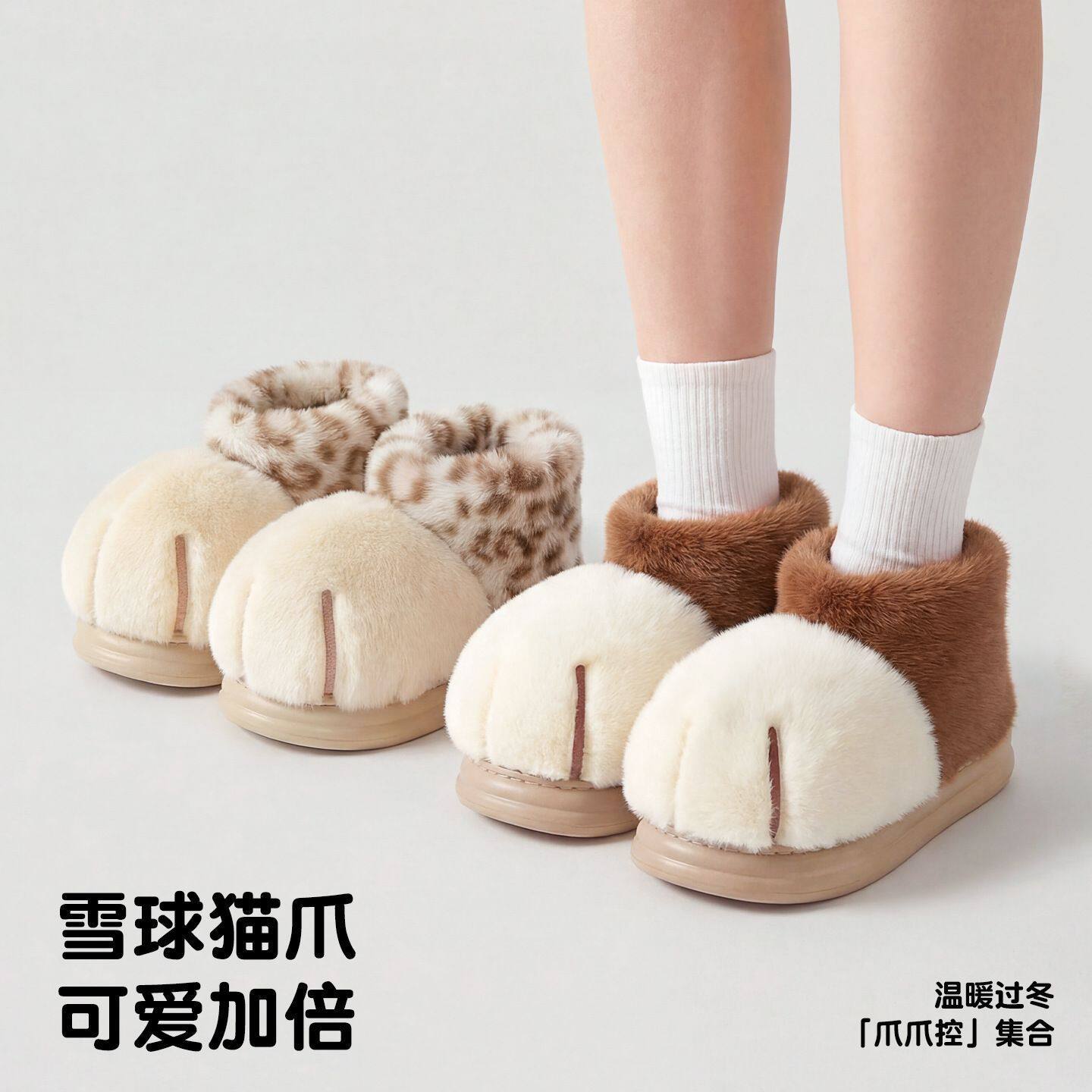雪球大猫爪棉靴亲子包跟棉鞋女冬家居加绒保暖情侣棉拖男厚底防滑