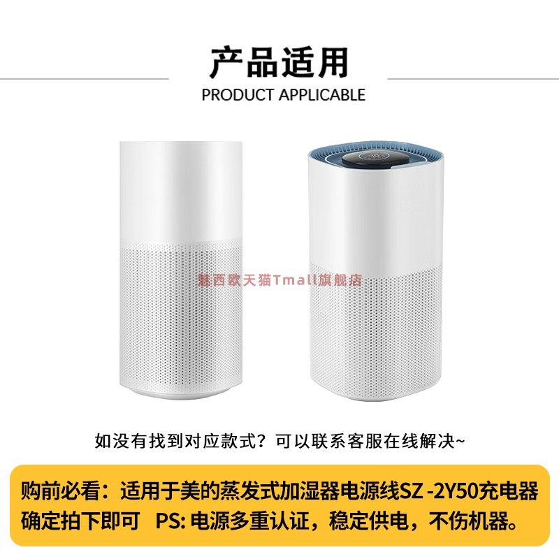 适用于美的蒸发式加湿器电源线SZ -2Y50 SZK-1Y80电源适配器12V/1.0A充电器配件