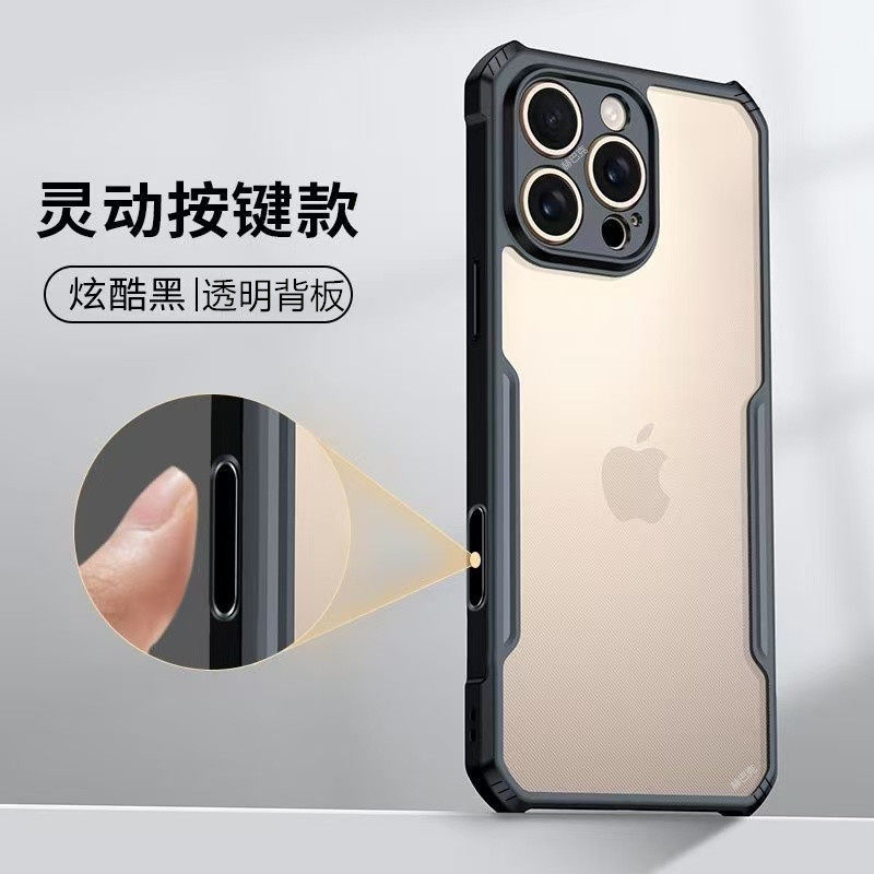 适用苹果17/16/15promax手机壳iPhone14pro保护套ip13简约11气囊防摔ip12透明不发黄6/7/8镜头全包SE2/3黑边