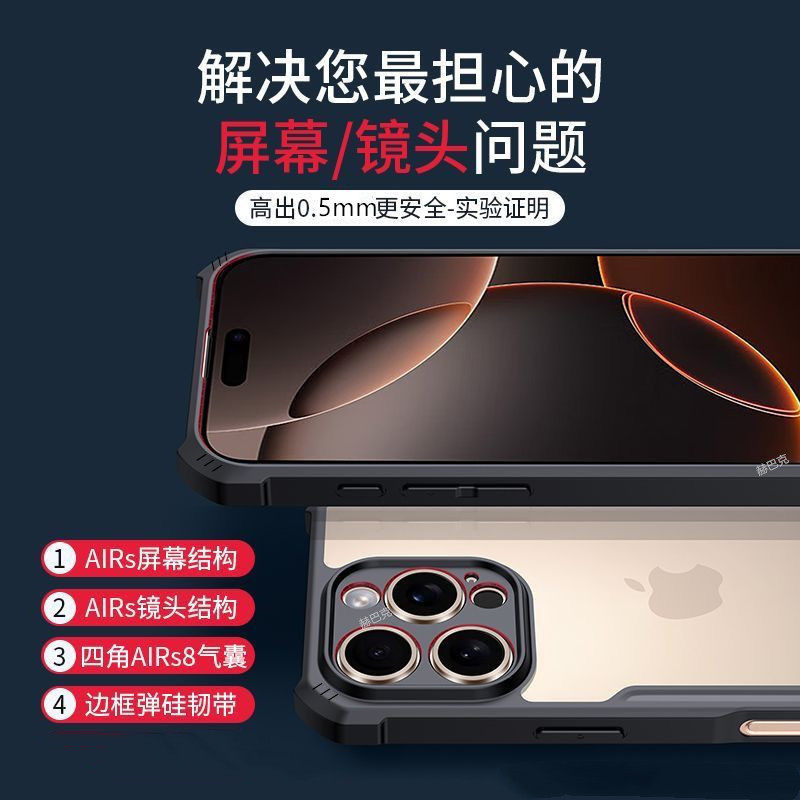防摔气囊]第一卫适用苹果16手机壳iPhone17promax新款15超薄14透明硅胶13镜头16e全包12plus高级感11保护套外