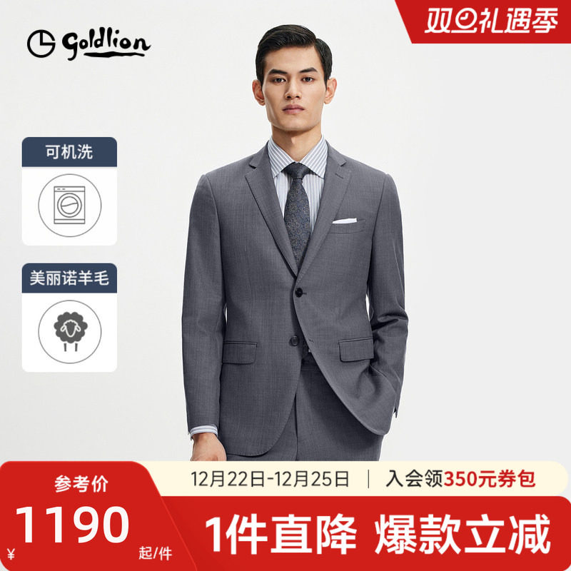【可机洗羊毛】金利来25秋冬男士西装灰色花纱修身商务正装西服男