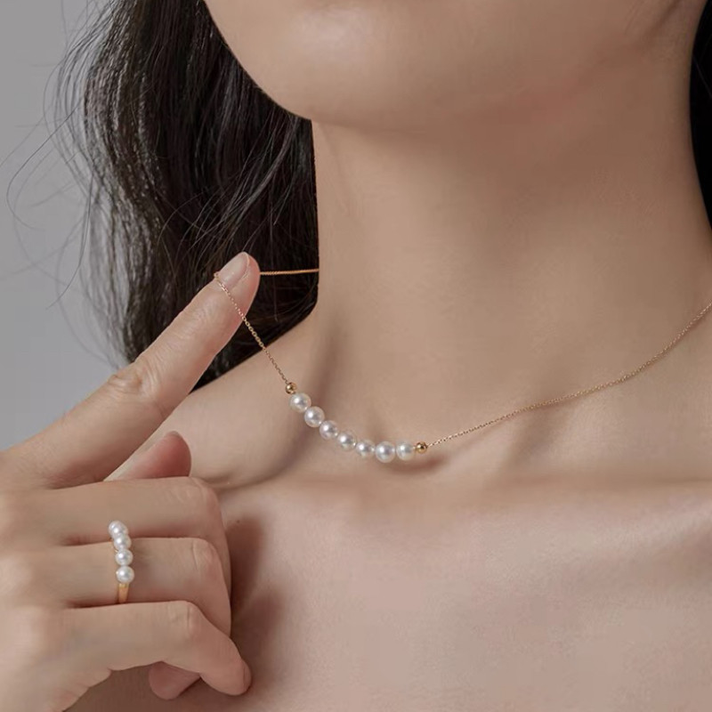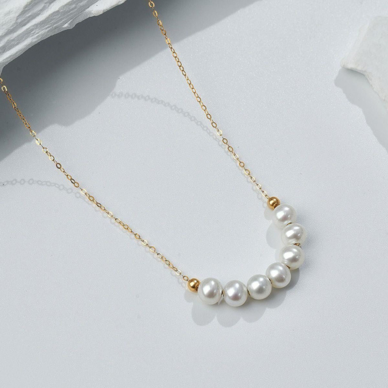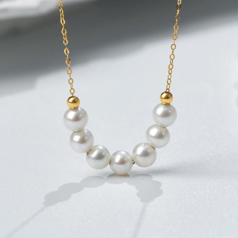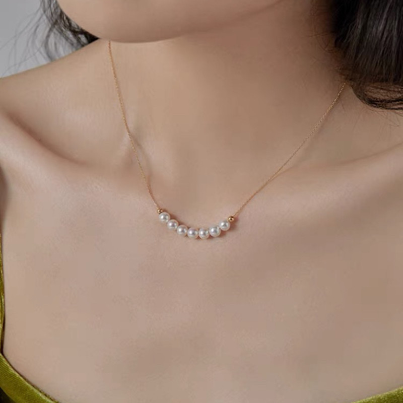 诸暨淡水珍珠项链女正圆强光18K金微笑锁骨链轻奢高级感礼物黄金