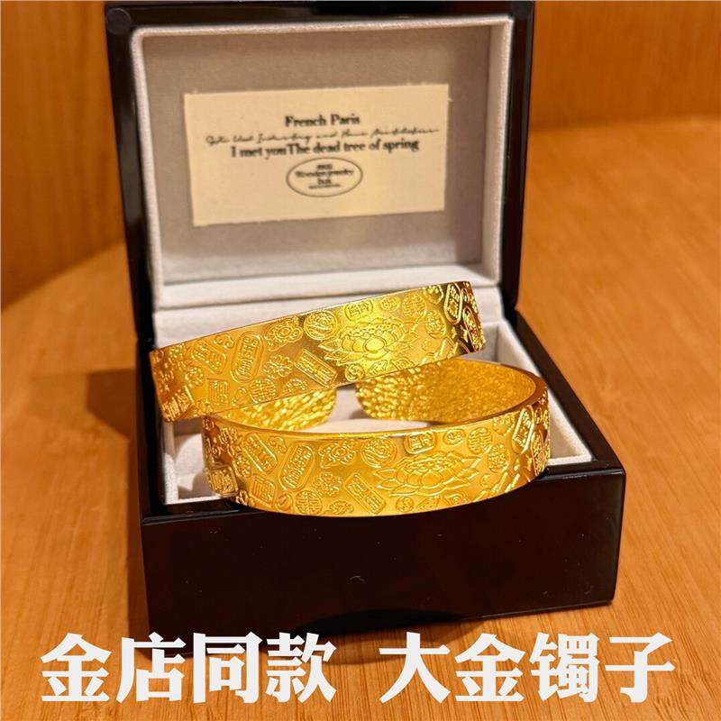古法宽版吉言开口手镯女士越南沙金仿真黄金大金镯子结婚三金首饰