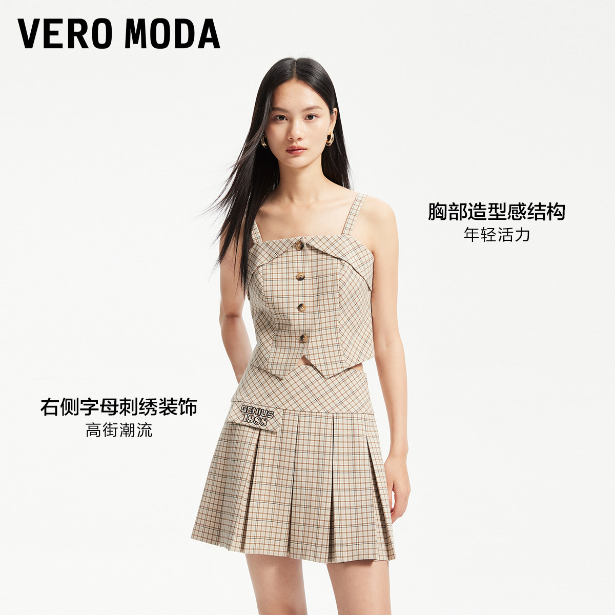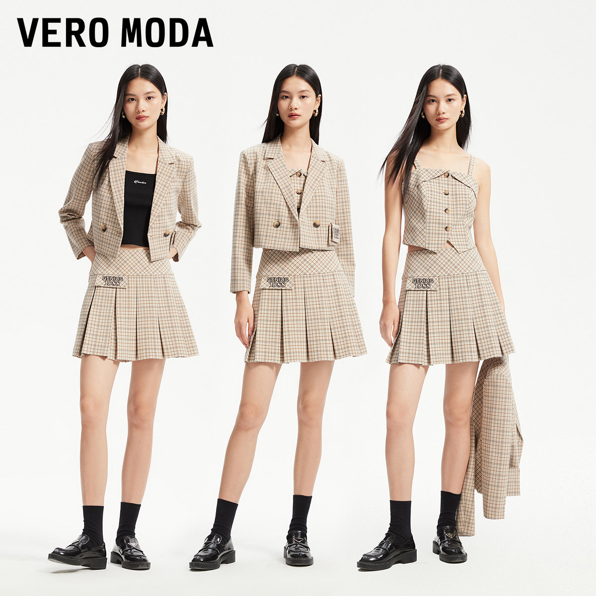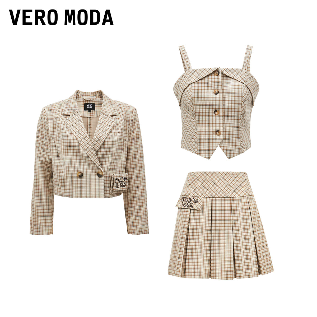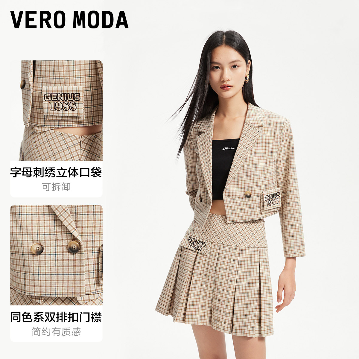 Vero Moda奥莱西装外套女秋季新款格纹短款九分袖学院风上衣流行