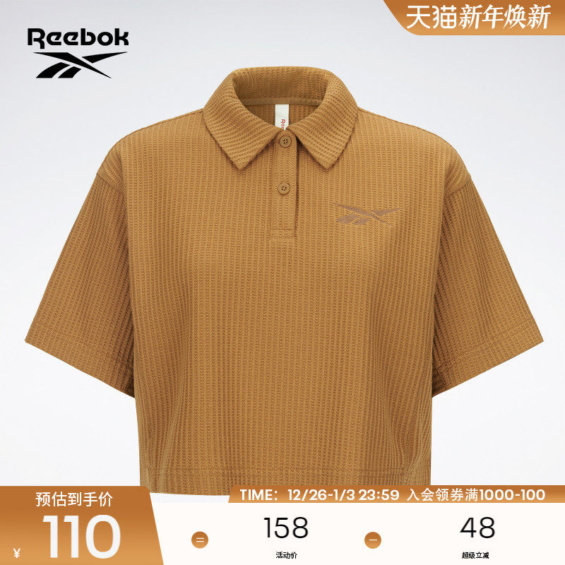 Reebok锐步官方女子短款针织透气运动休闲宽松舒适短袖POLO衫