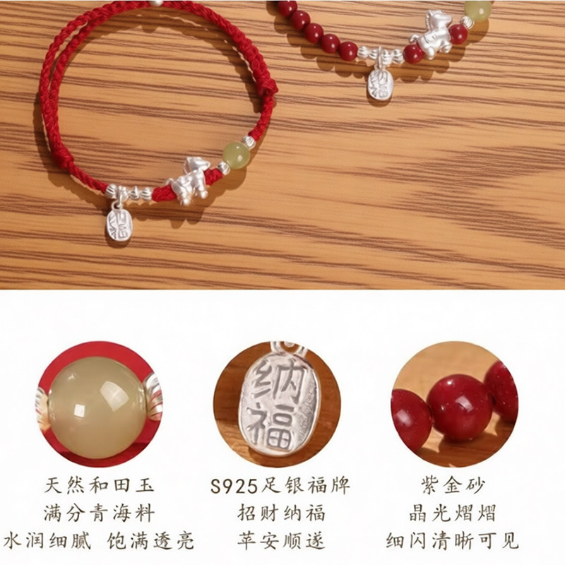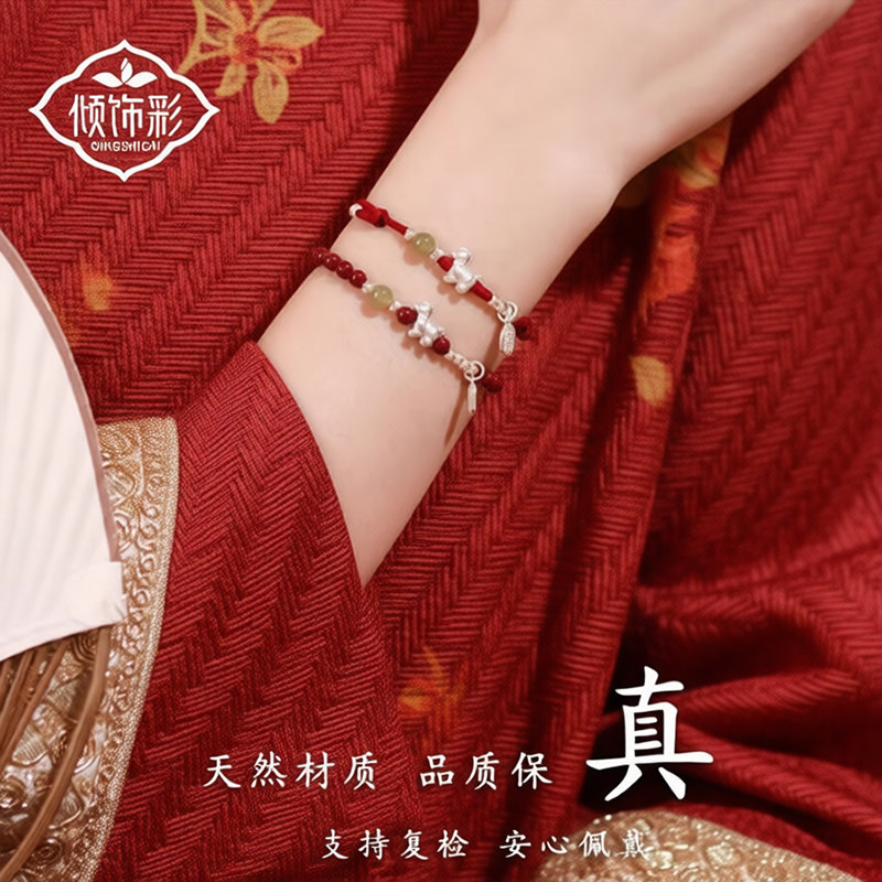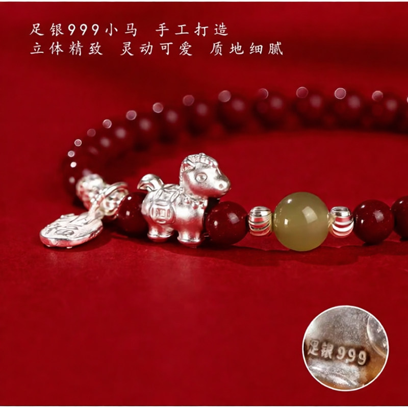 马踏红运天然朱砂手串女足银999本命年手绳手链叠戴圣诞元旦礼物