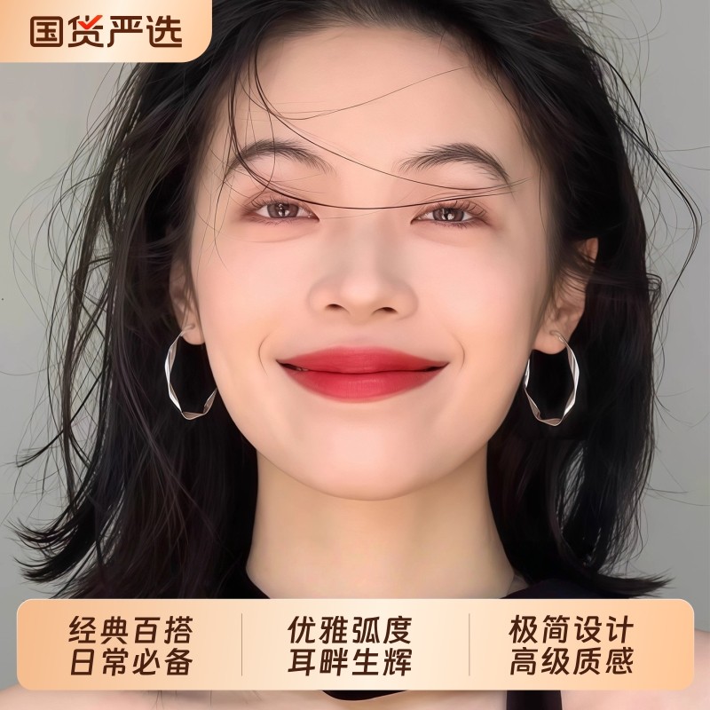 圆圈耳环菱纹光面耳圈潮高级感不掉色925银针轻奢欧美风夸张耳饰