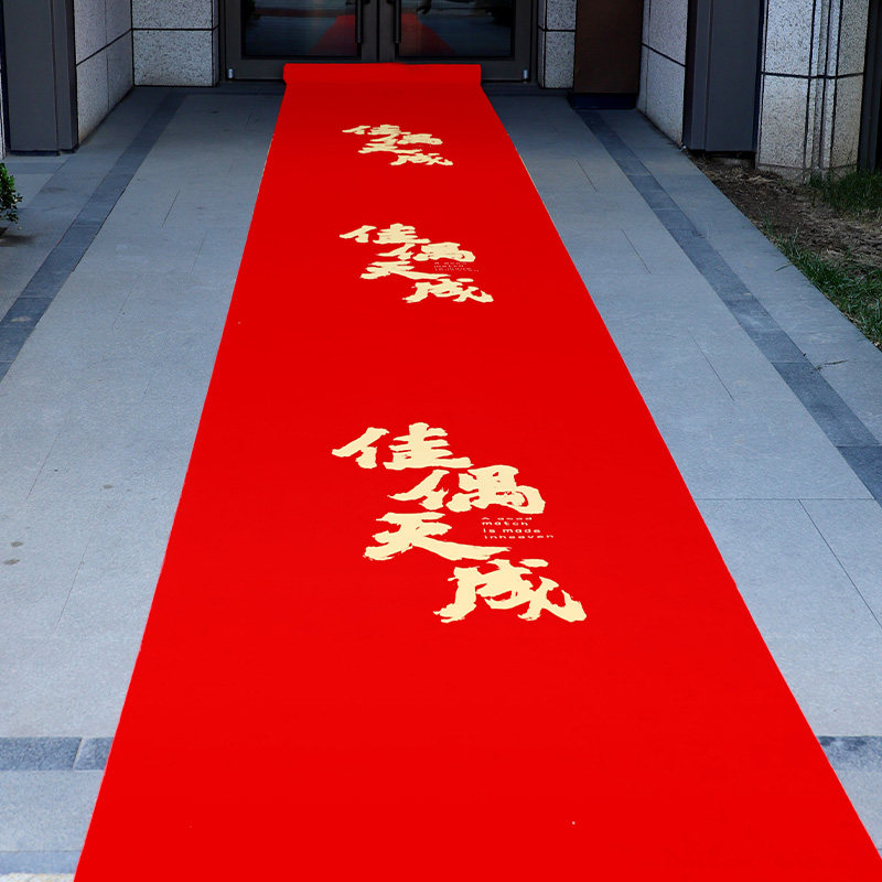 结婚红地毯一次性楼梯门口加厚无纺布喜字婚庆用品红色大地毯