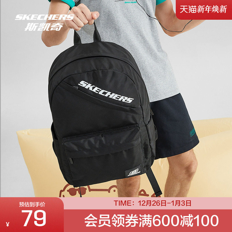 斯凯奇官方outlets 经典时尚双肩包轻便大容量背包初中生宽肩带包