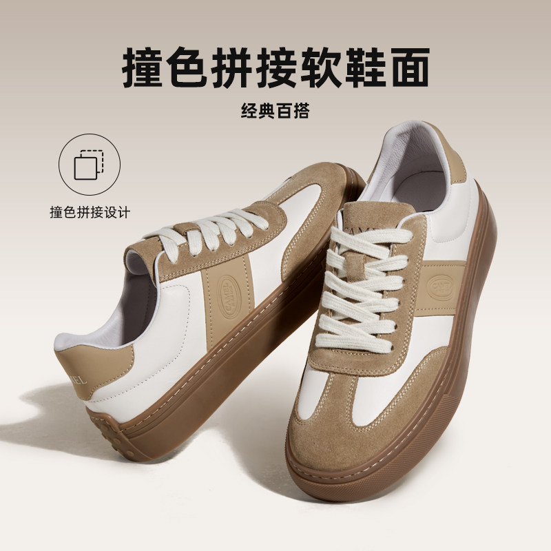 骆驼男鞋2025复古德训鞋冬季新款潮鞋真皮运动小白鞋百搭休闲板鞋