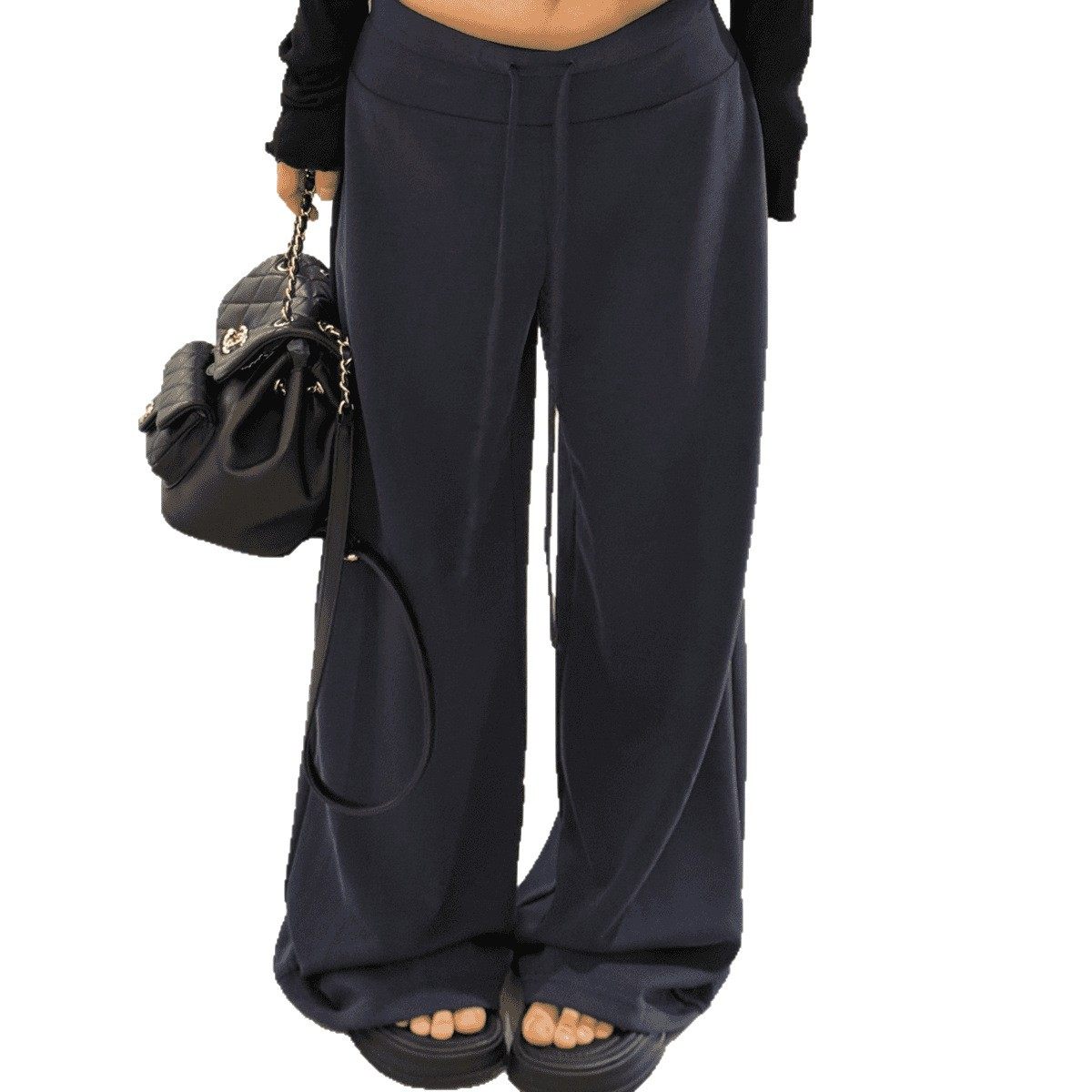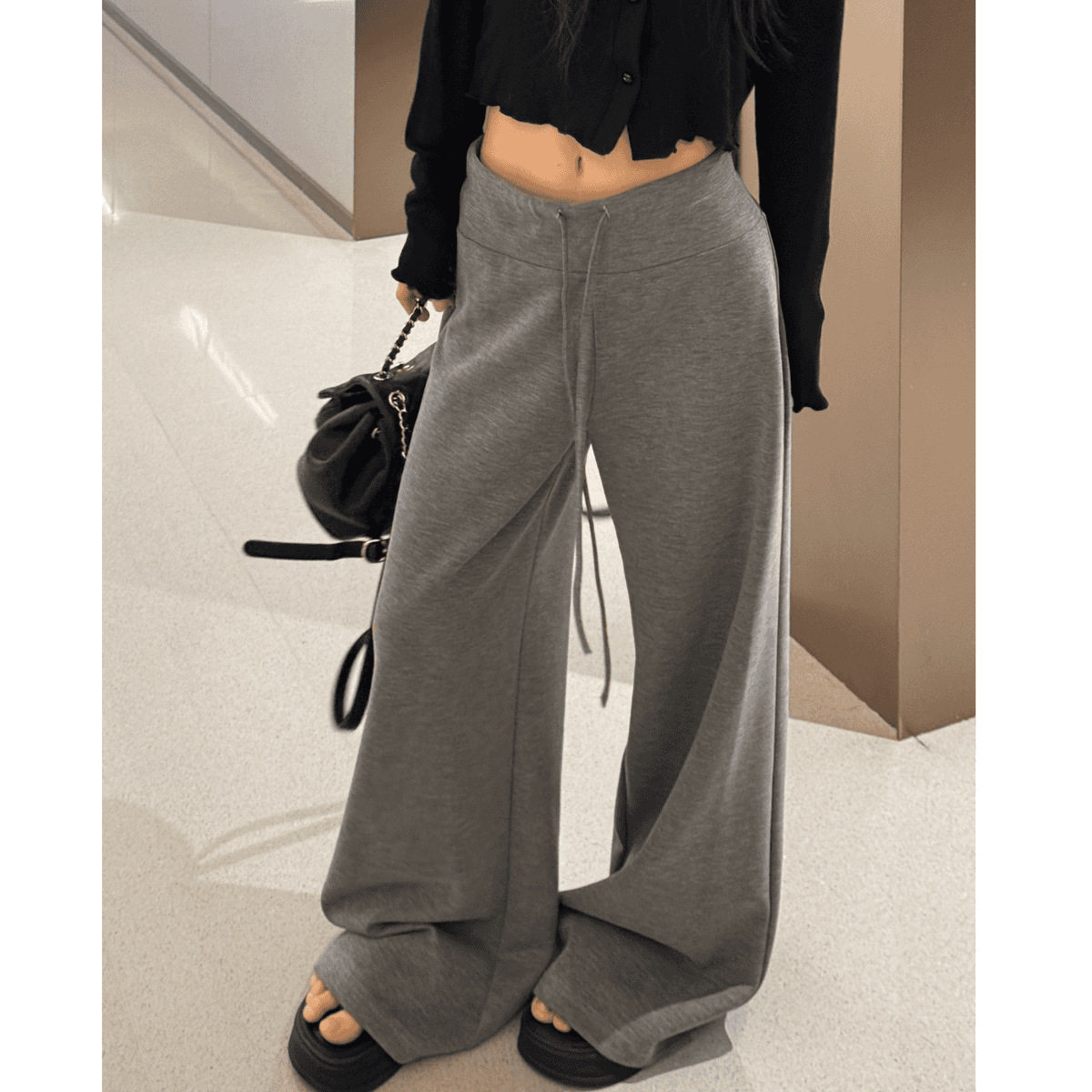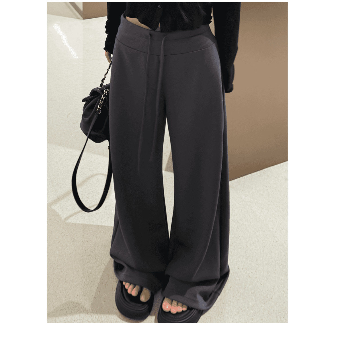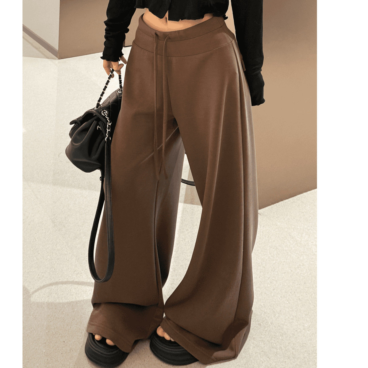 NOME(服饰)秋新款慵懒休闲风中低腰显瘦直筒抽绳凉感面膜裤阔腿