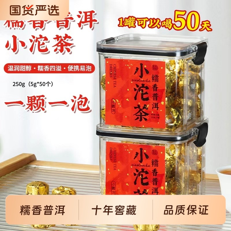 普洱茶叶十年陈年糯香普洱小沱茶云南勐海熟茶小金砖自饮罐装250g