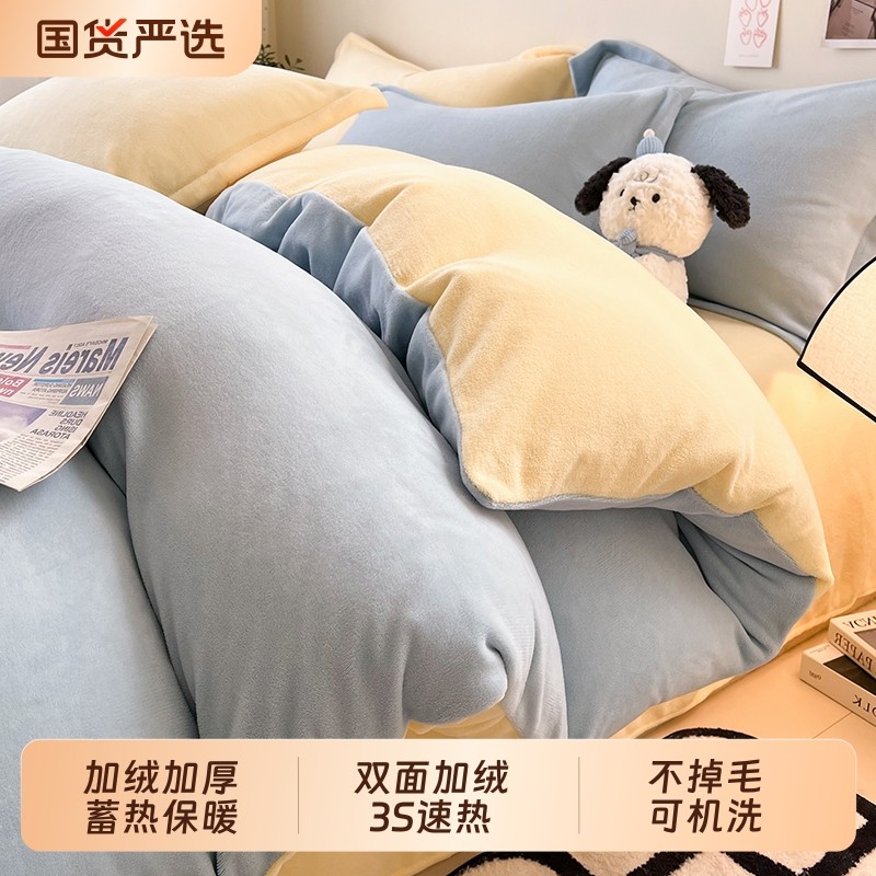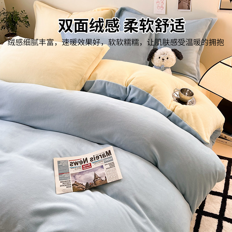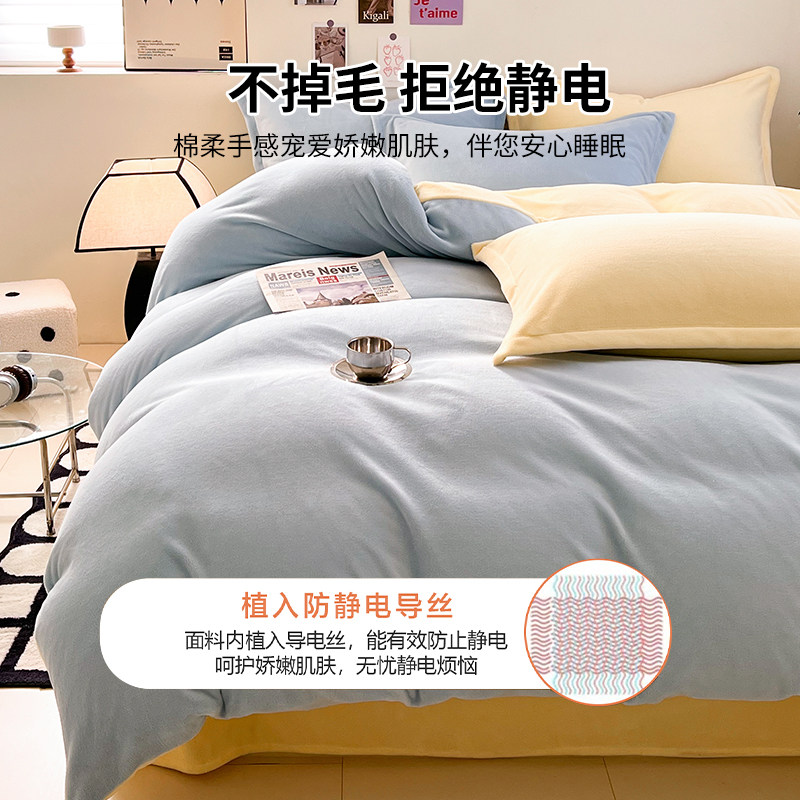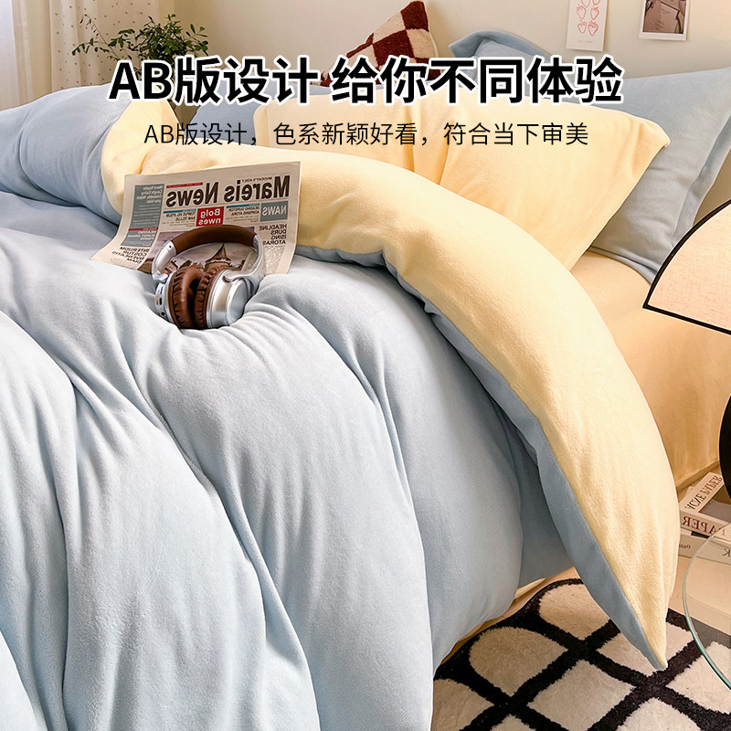 冬季加绒被套单件牛奶绒珊瑚绒宿舍单人单独毛绒被罩1.5米四件套3