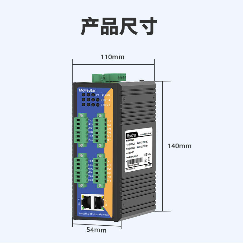 【MoweStar】移星工业级隔离串口服务器8口RS485转以太网RJ45网口模块 ModbusTCP导轨式智能网关 NS308GN