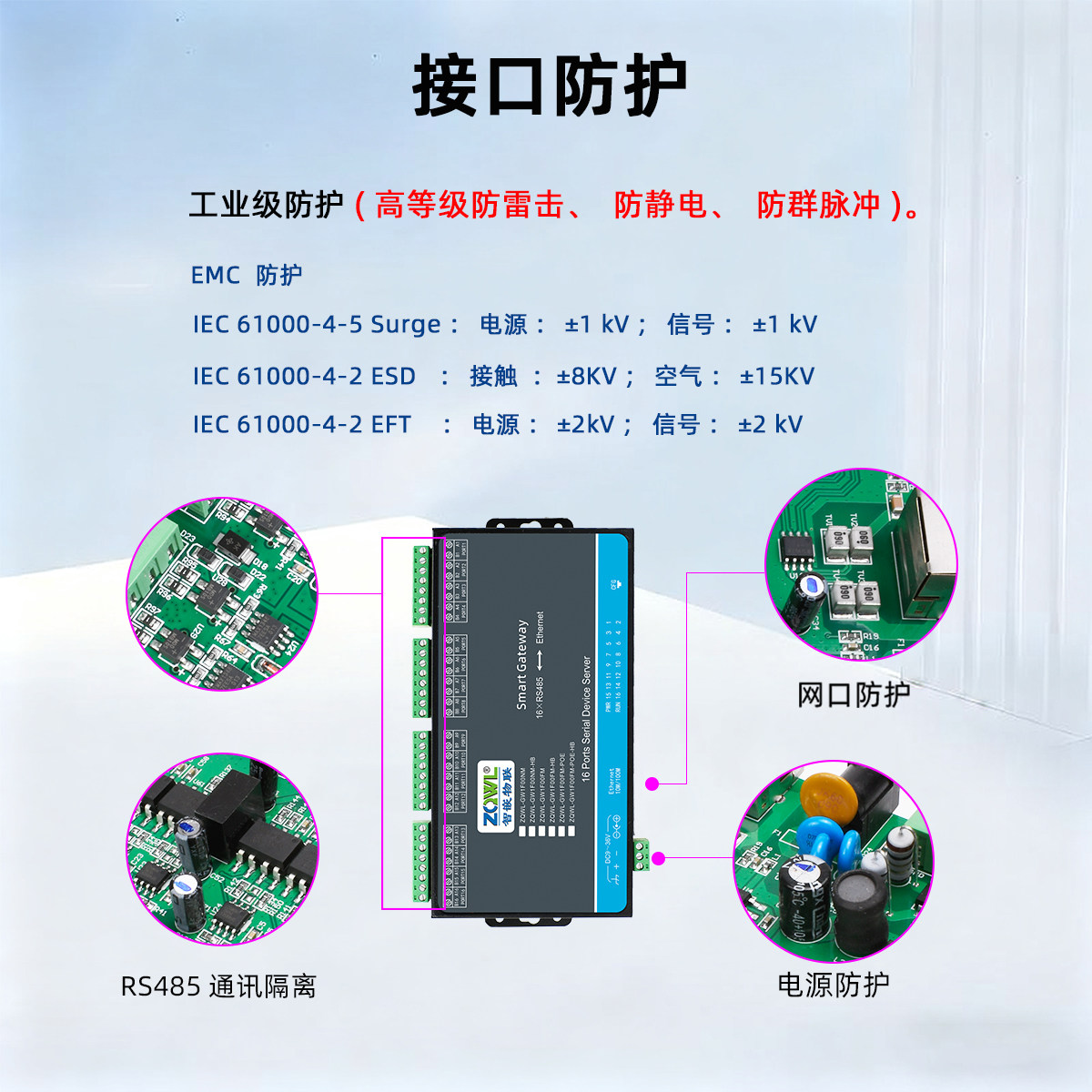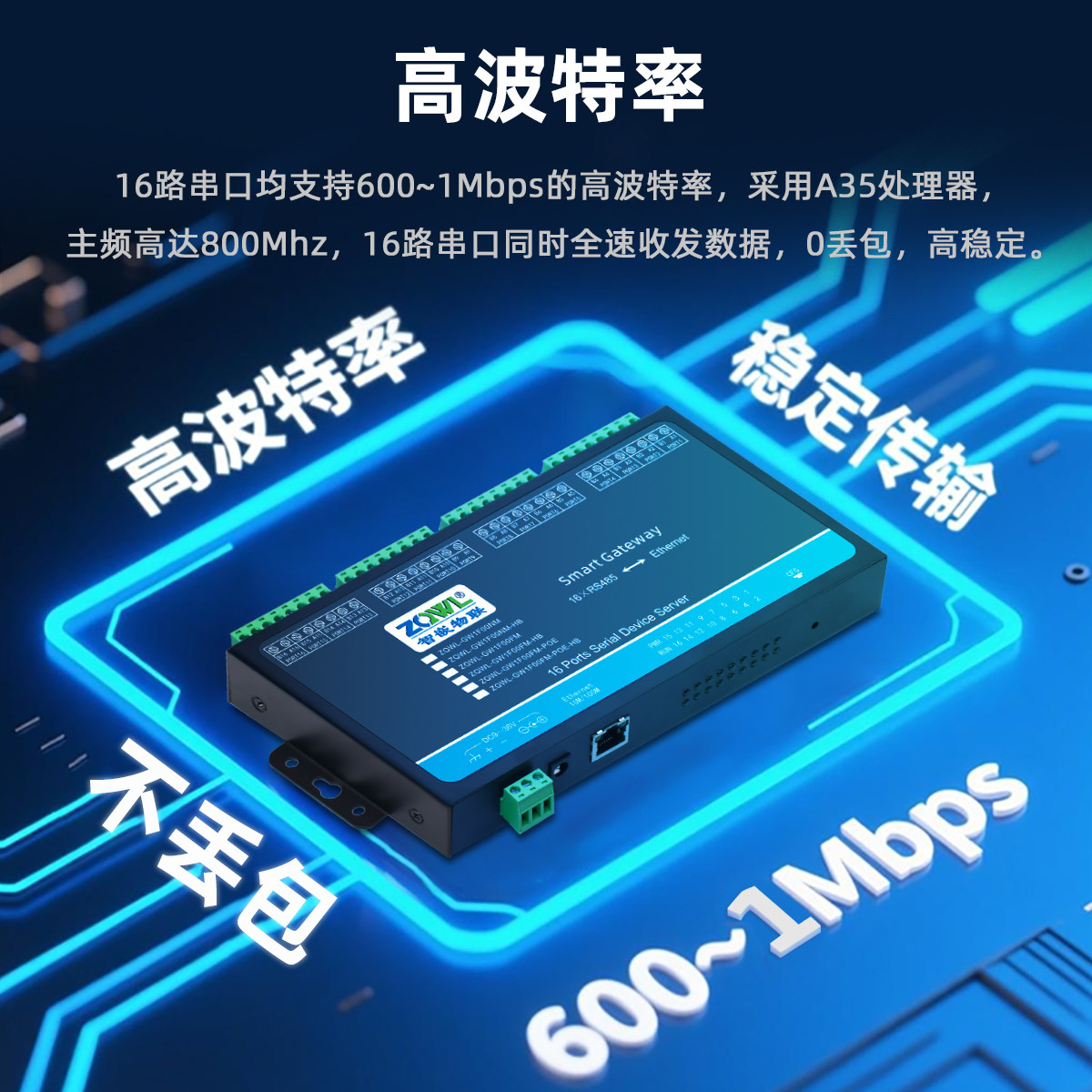 智嵌物联16路串口服务器rs485转以太网模块mqtt通讯http串口转网络modbus网关TCP/RTU互转主动轮询A35处理器