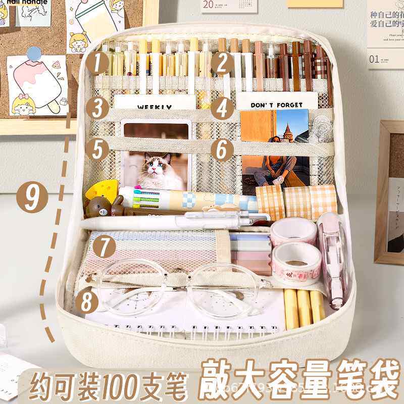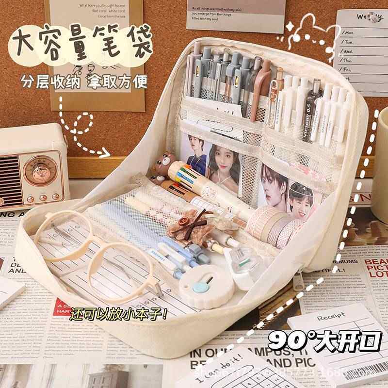 新品 大容量学生笔袋 分类收纳高颜值化妆包 分格收纳包收纳 袋