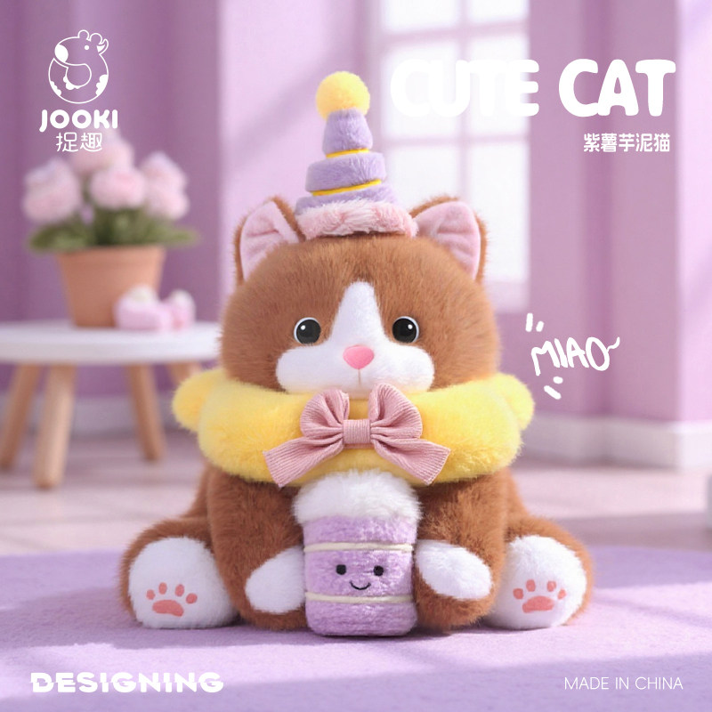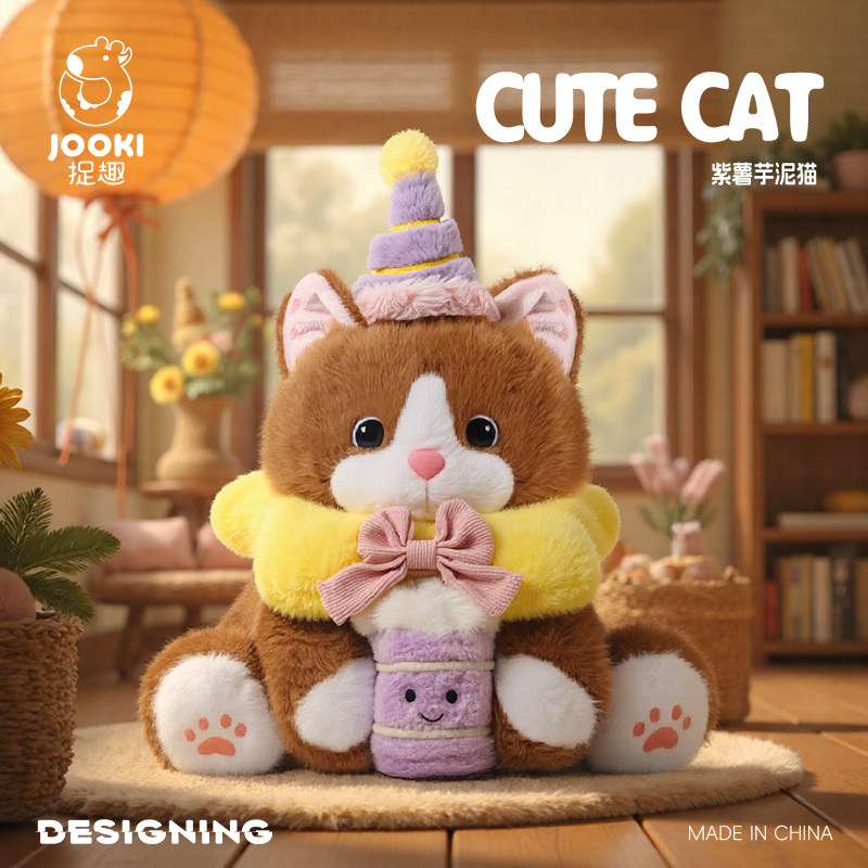 捉趣紫薯芋泥猫毛绒玩具可爱小猫咪玩偶公仔睡觉抱枕女孩生日礼物