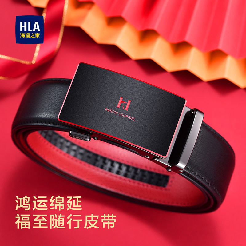 海澜之家皮带男士真皮2025马年本命年红色腰带结婚新款礼物裤带潮