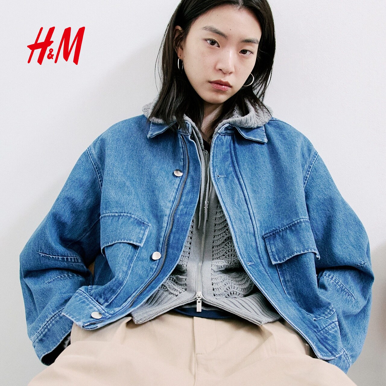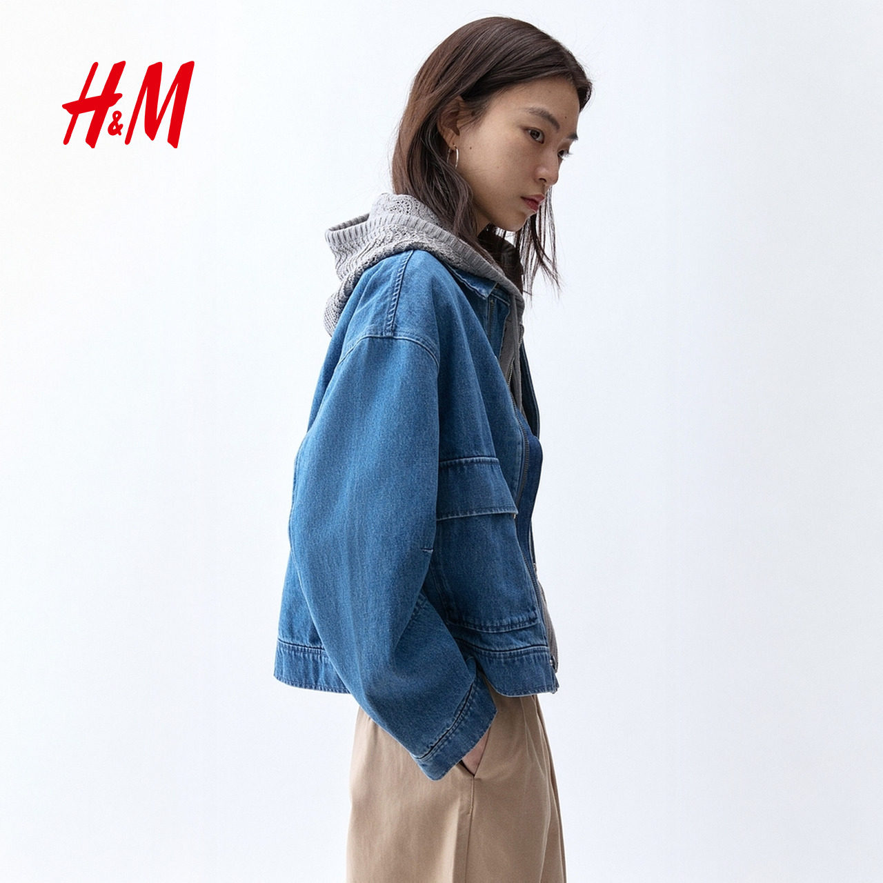 HM女装短外套2026春季新款宽松美式丹宁单排扣牛仔外套1326983