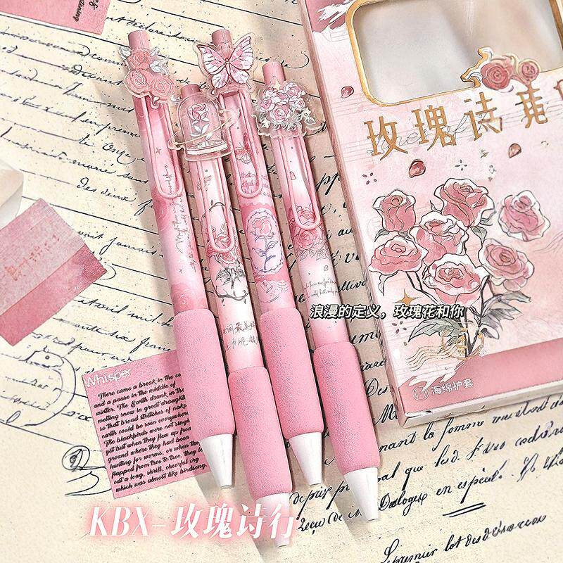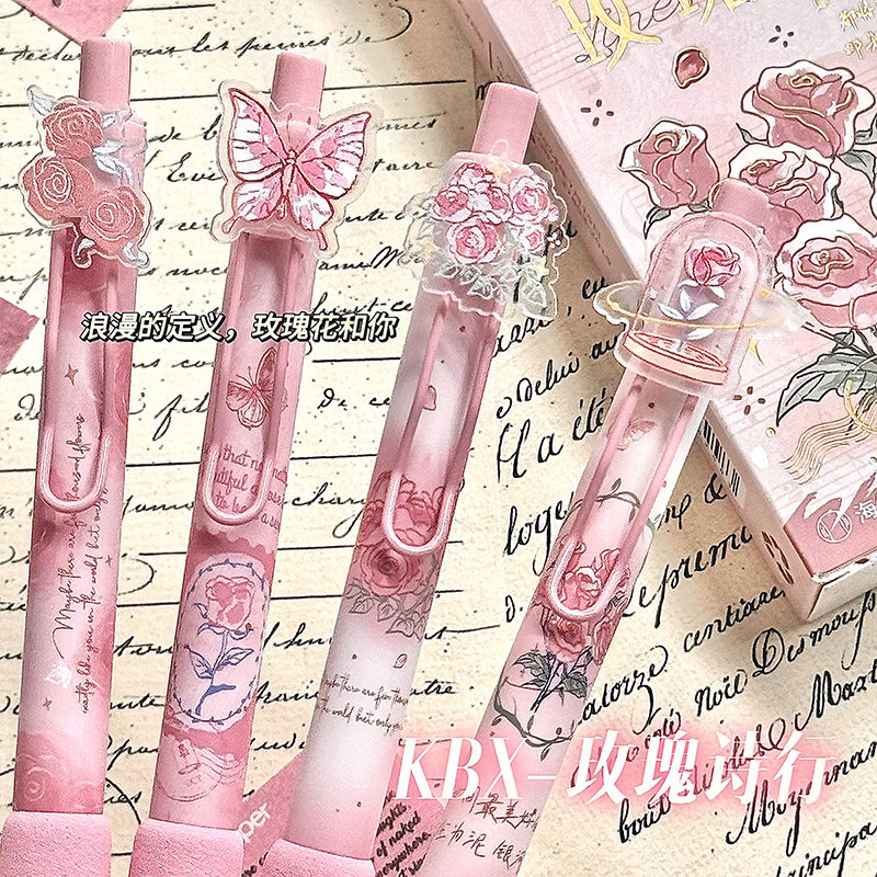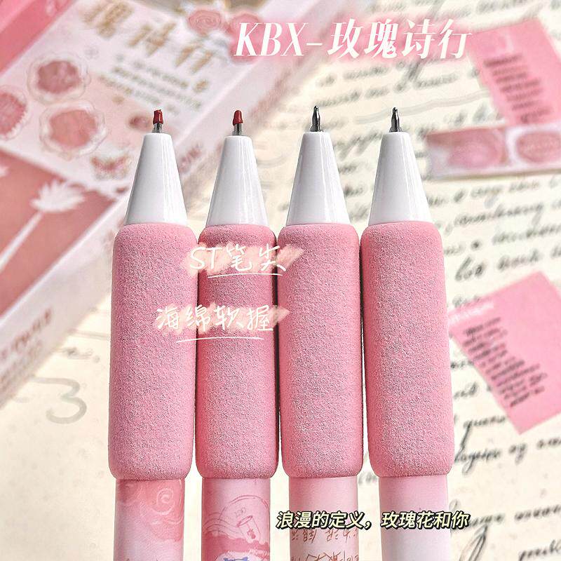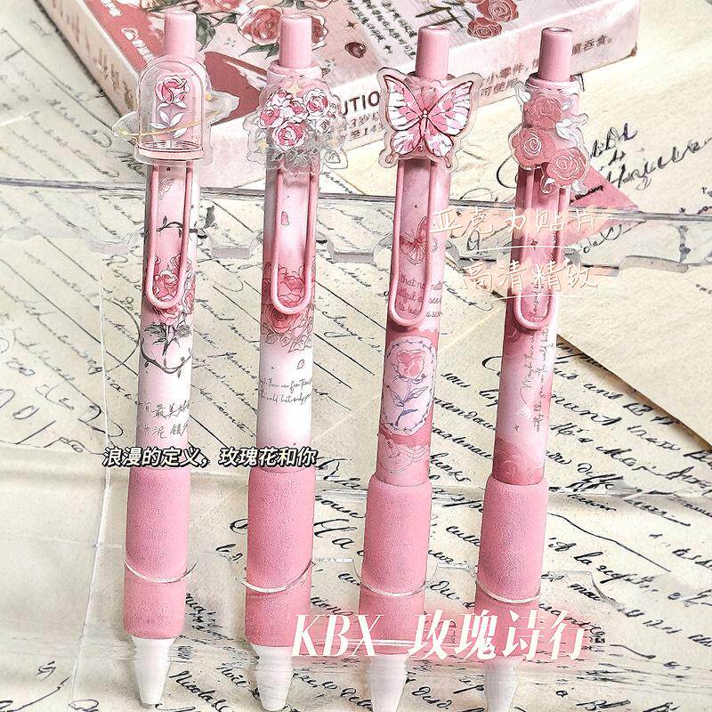 咔巴熊玫瑰诗行按动中性笔高颜值ins风
