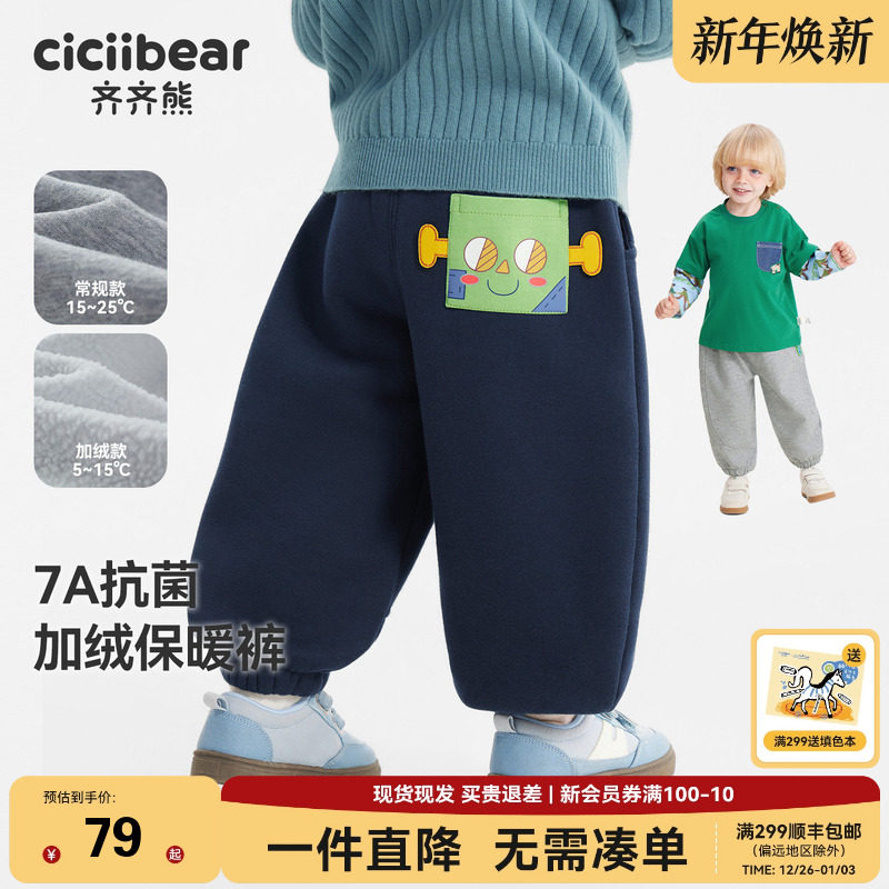 [云朵裤]齐齐熊男童运动裤秋冬款卫裤儿童裤子冬加厚衣服宝宝加绒