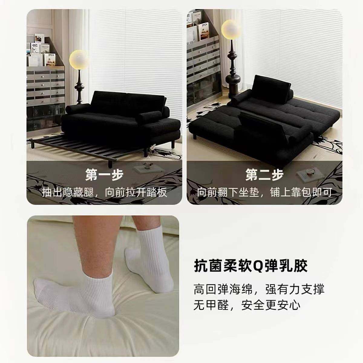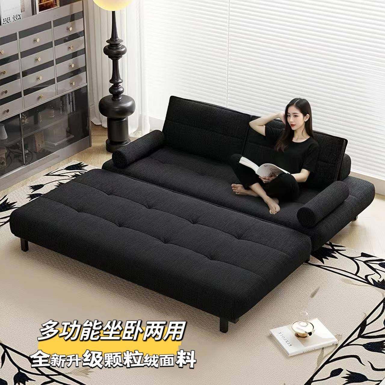 黑色皮艺布艺单人双人民宿小户型酒店客厅可折叠沙发床一体两用