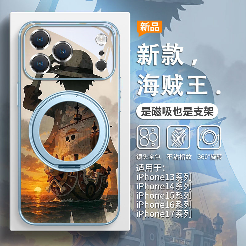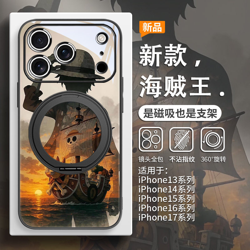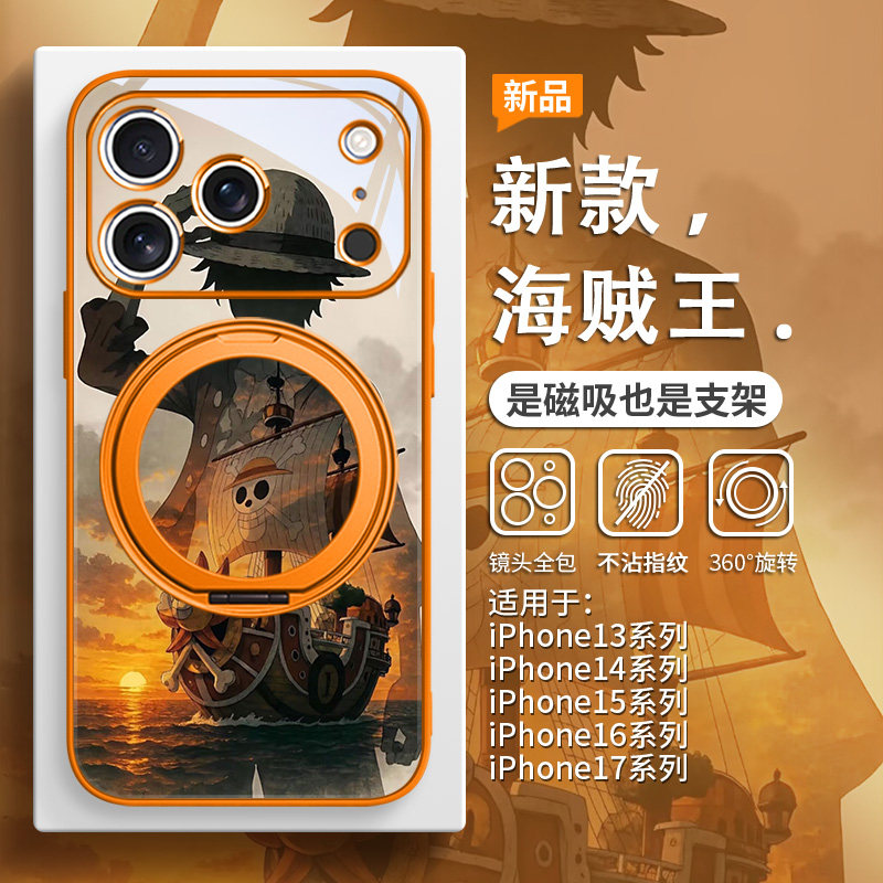 海贼王适用iPhone17磁吸手机壳苹果16promax带支架air新款15plus尼卡路飞14pro高级感13创意12支点壳magsafe