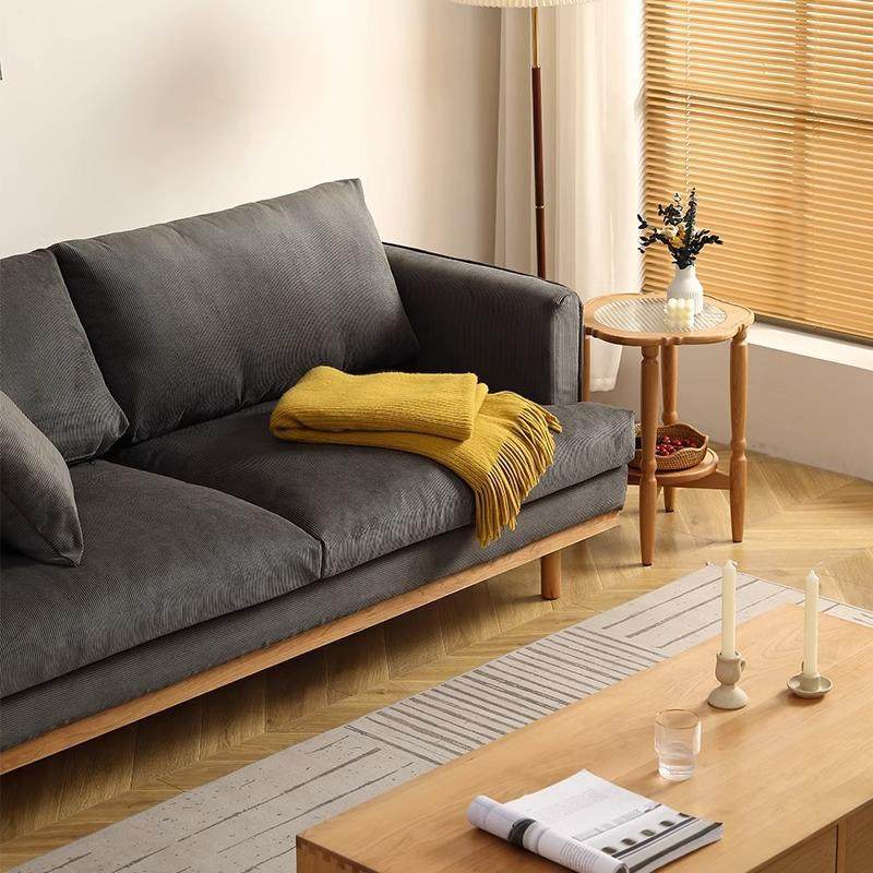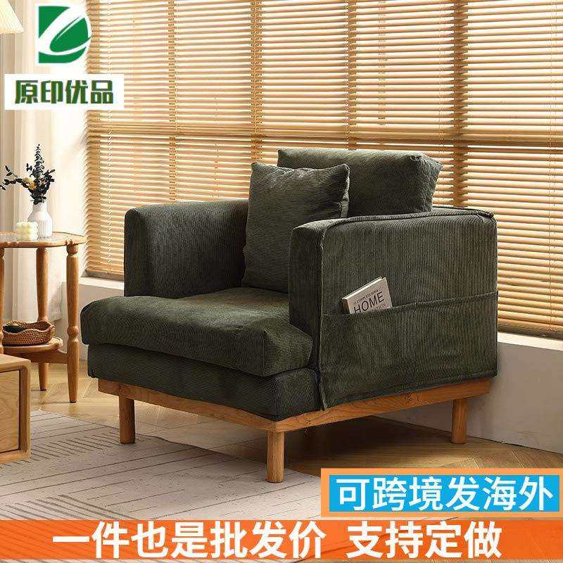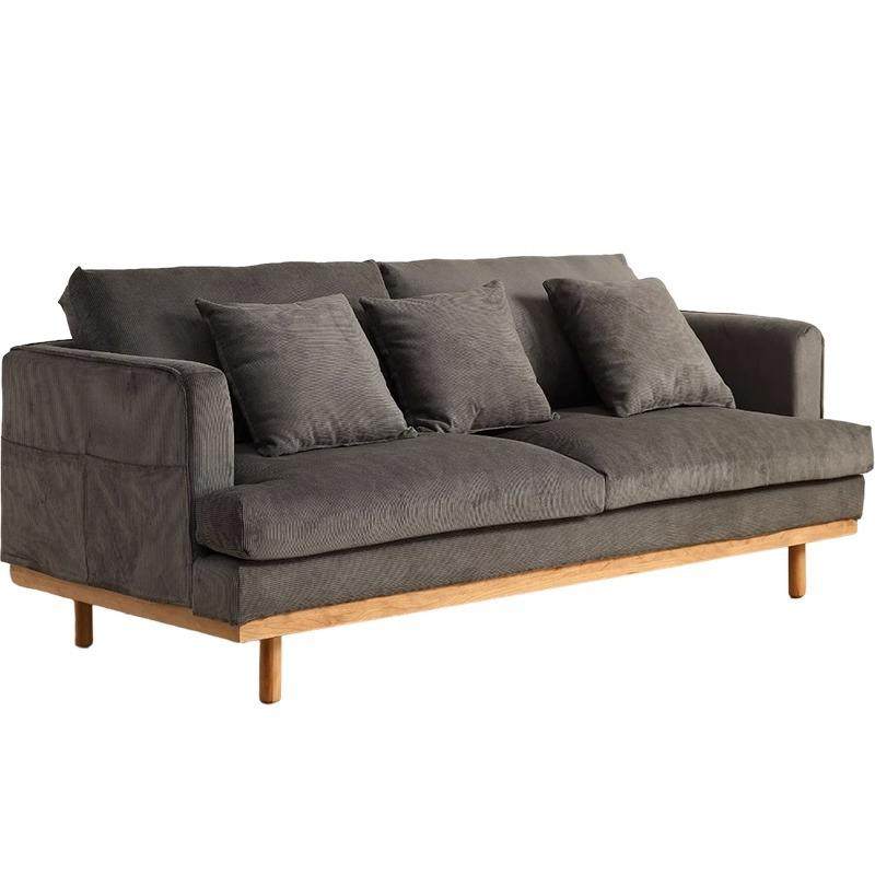 北欧实木沙发樱桃木客厅小户型布艺灯芯绒简约复古怀旧三人可拆洗