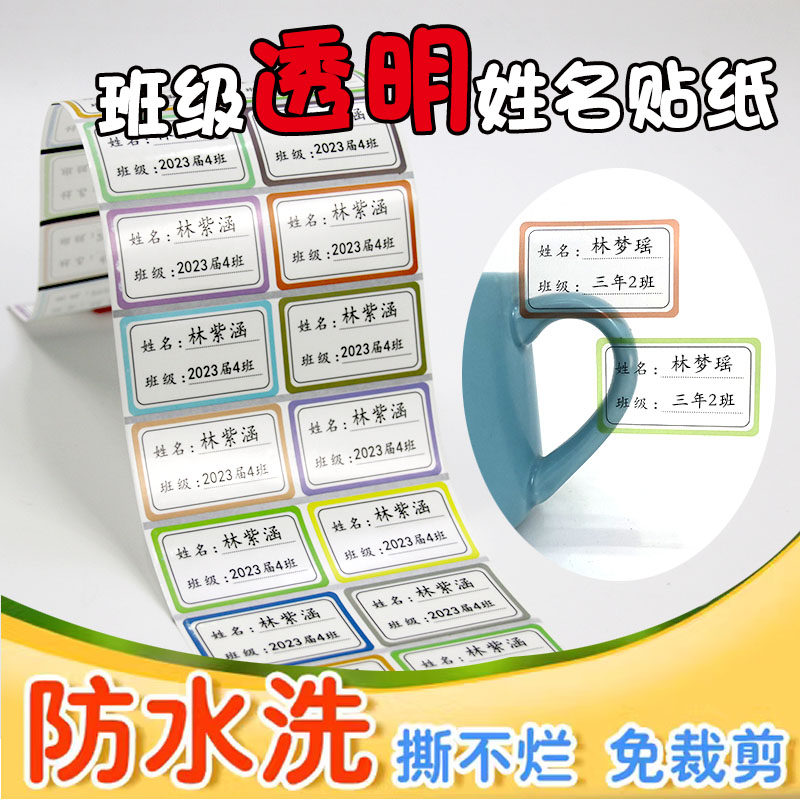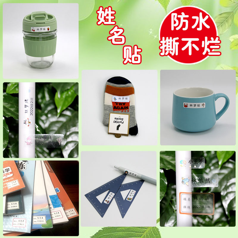 名字贴纸幼儿园姓名贴小学生文具水杯贴班级贴学生书本年级班级贴纸自粘不干胶姓名学号名字贴标签水杯定制