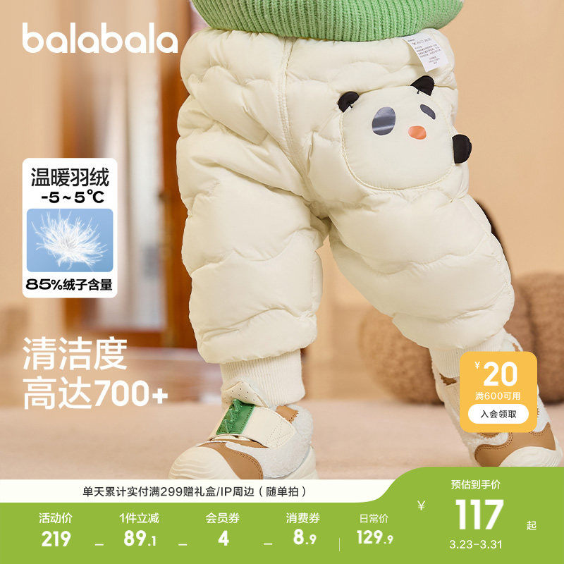 巴拉巴拉儿童羽绒裤婴儿男童女童长裤宝宝保暖冬季高腰裤子萌加绒