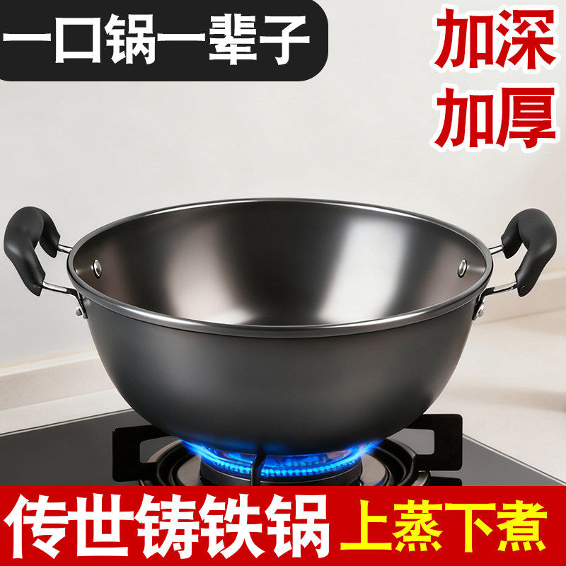 铁锅官方旗舰炒菜锅老式炒锅铁锅家用不粘锅无涂层燃气灶适用