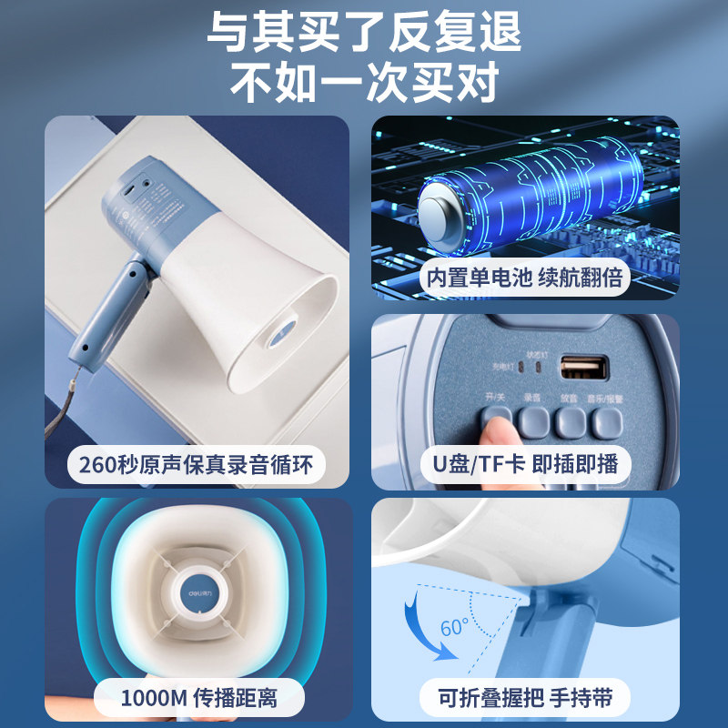 得力嗽叭扬声器喇叭地摊叫卖可录音大声公喊话录音喇叭扩音器户外