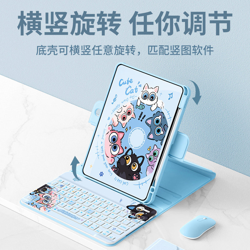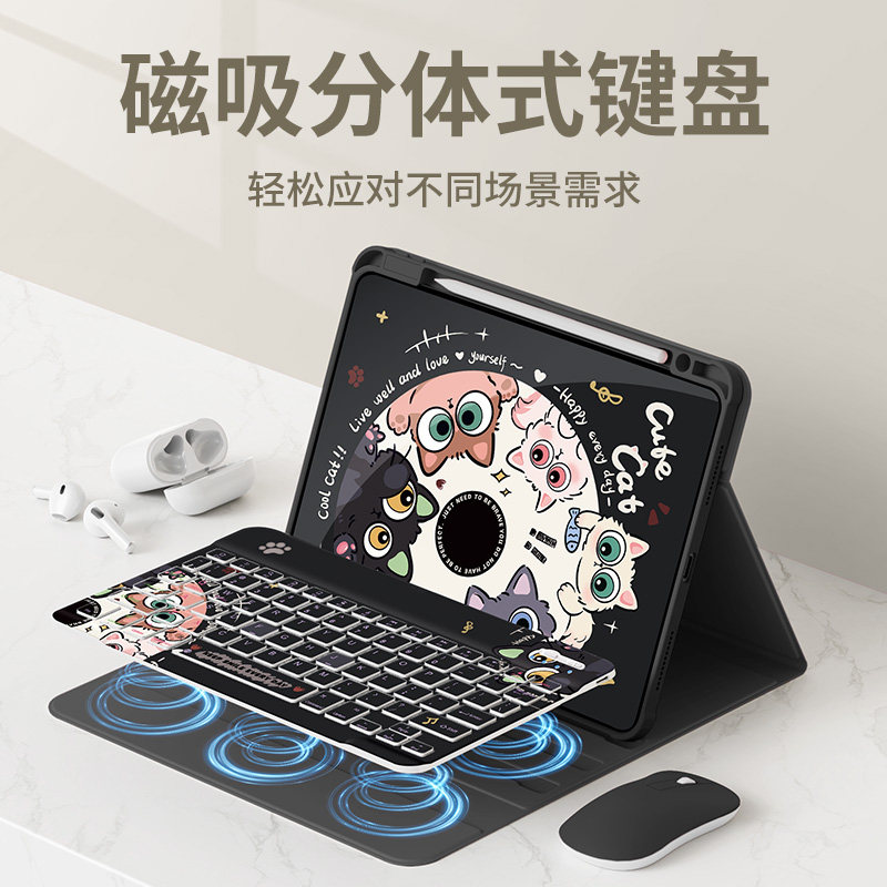 Qboss适用iPadA16保护套2025新款air7苹果第11代九9平板3保护壳10.2触控键盘air4/5全包pro2022带笔槽cute猫8