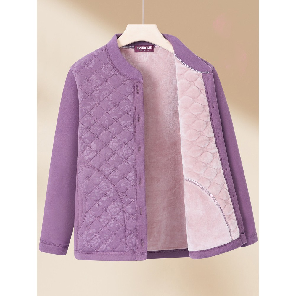 中年妈妈装加绒外套女装内搭开衫保暖加厚上衣中老年人打底小棉袄