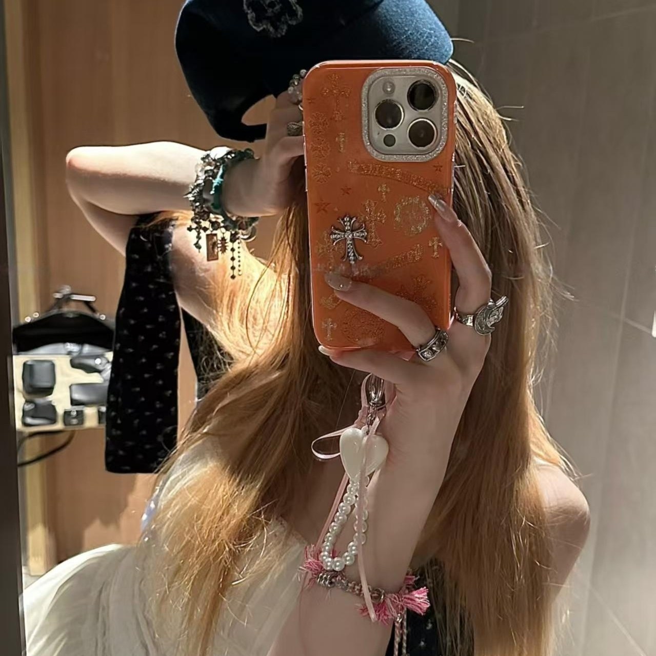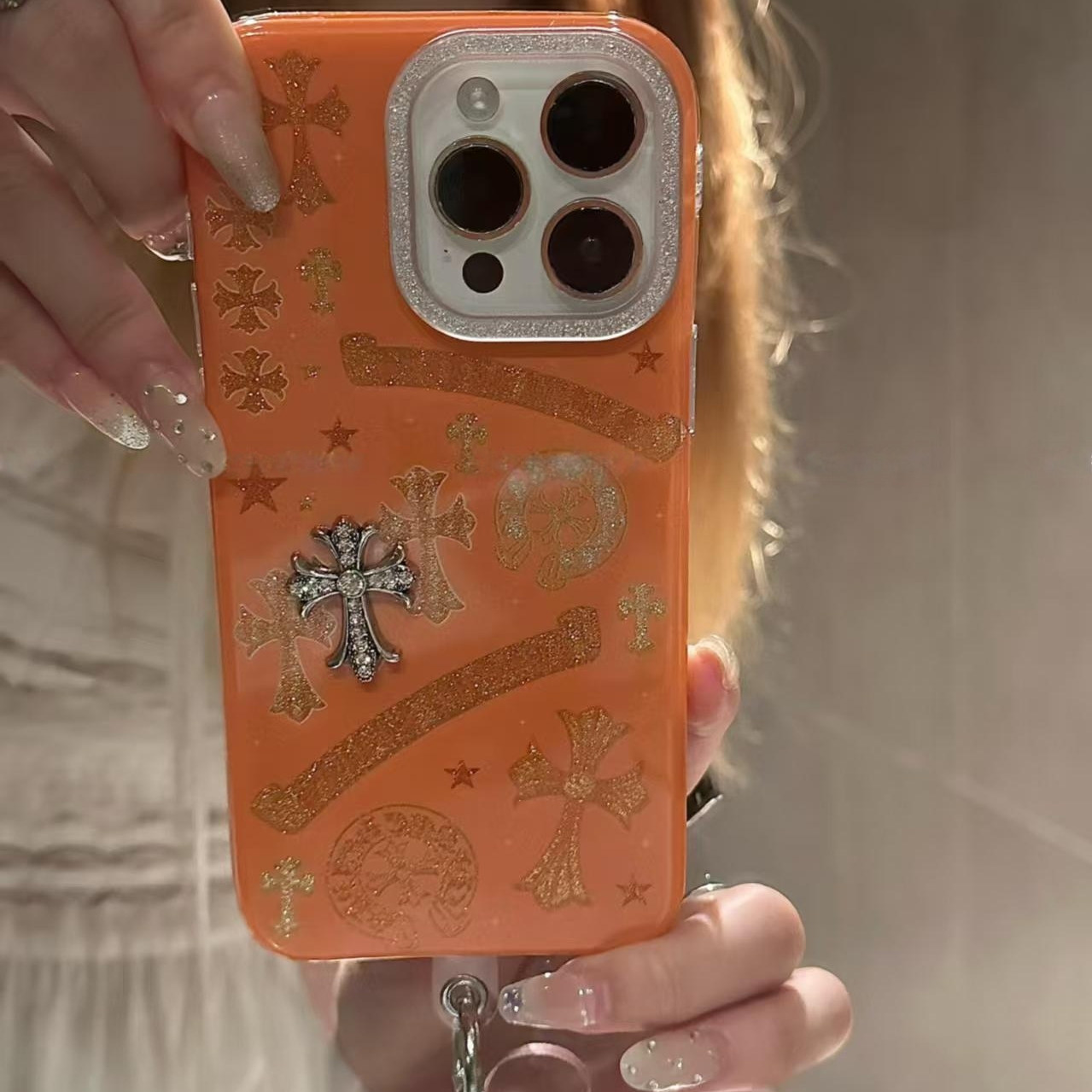 秋冬复古腔调橙色十字架适用iPhone17promax手机壳15新款17pro网红女款13创意全包防摔16pro超好看17保护套