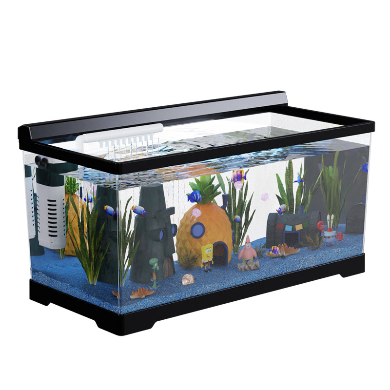 新款生态鱼缸过滤制氧一体机小型家用客厅桌面金鱼缸造景全套底部