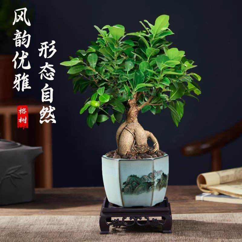 大榕树盆景办公室桌面客厅绿植物人参榕老桩四季常青小榕树苗盆栽