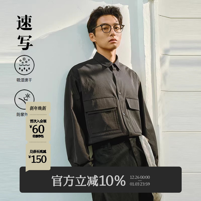 速写男装官方秋冬折扣新款休闲长袖衬衣工装外套式衬衫宽松潮上衣