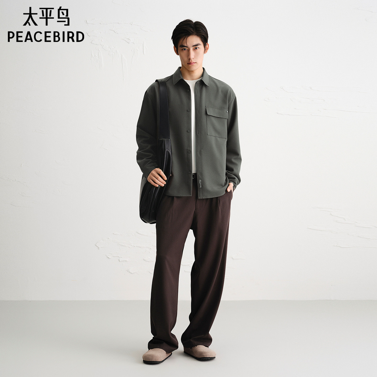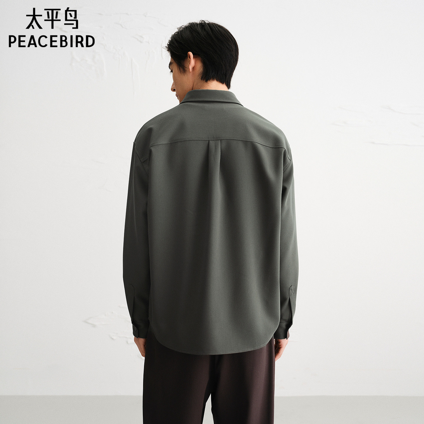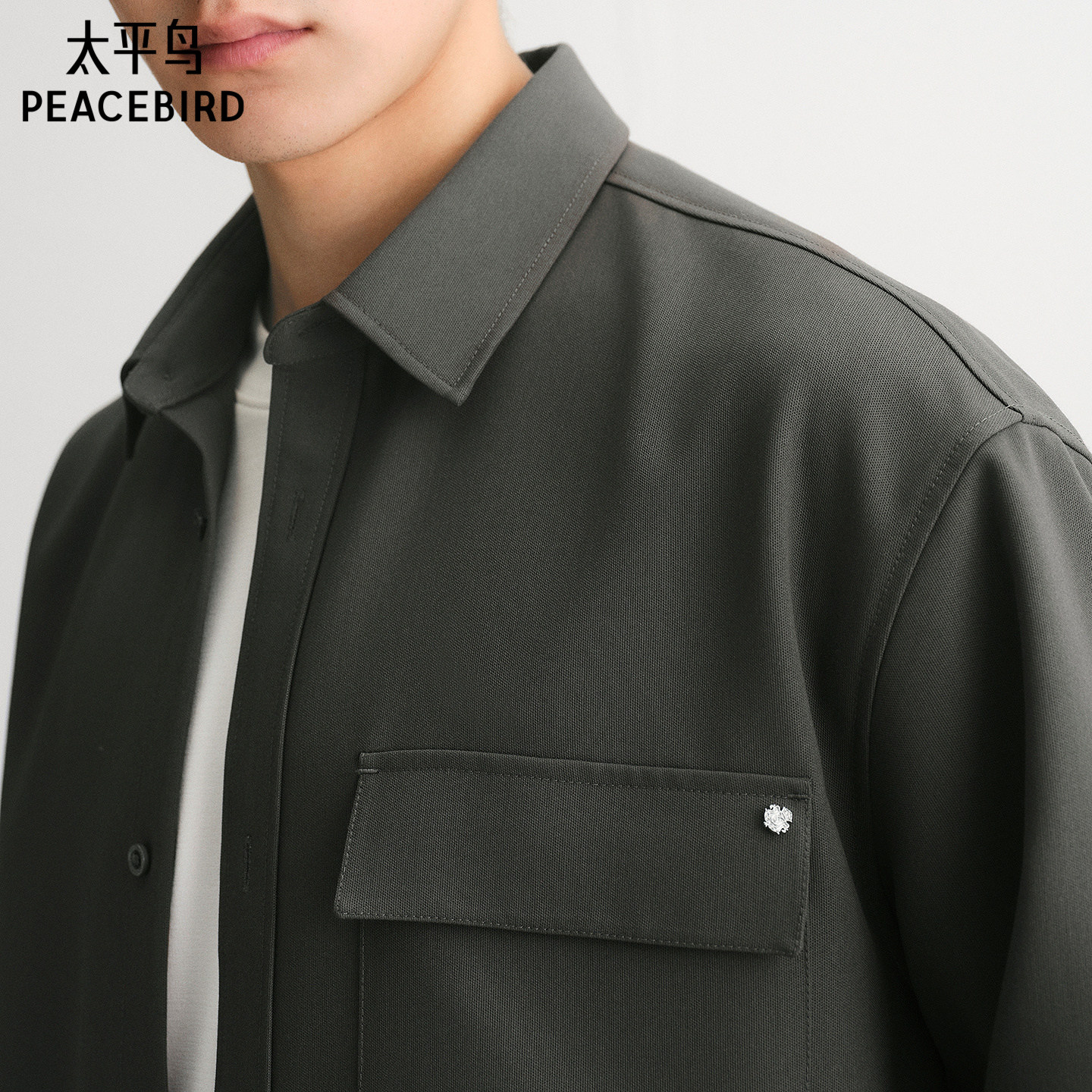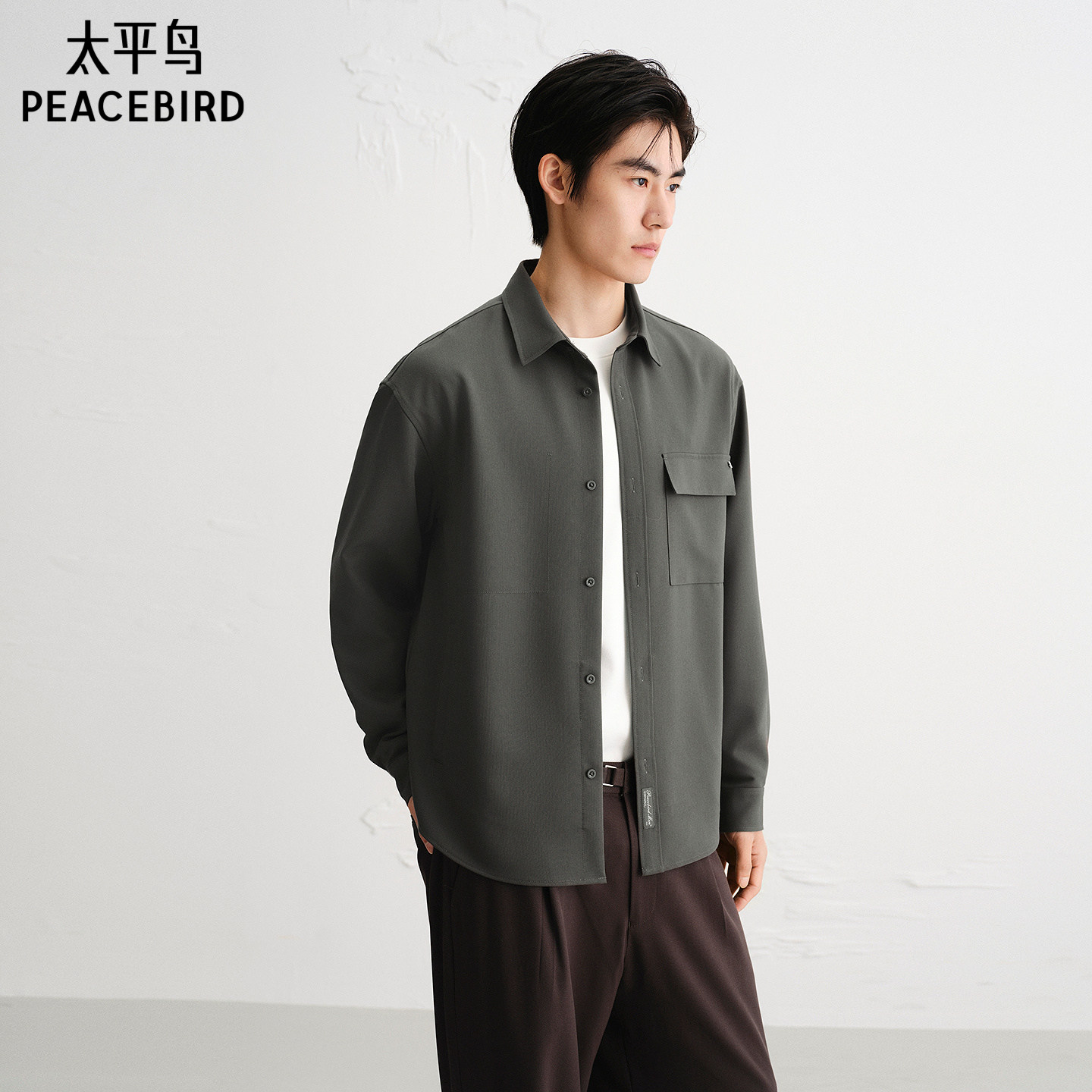 太平鸟男装 休闲衬衫2025秋季新款纯色工装衬衫休闲时尚男士衬衫