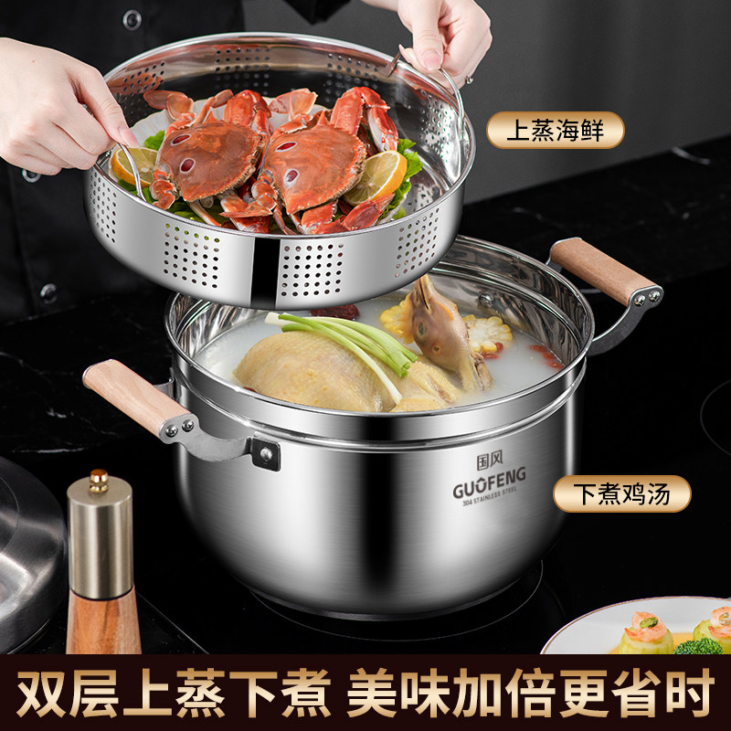 304不锈钢蒸锅汤锅加厚蒸锅家用煮锅燃气电磁炉专用蒸米饭锅小型