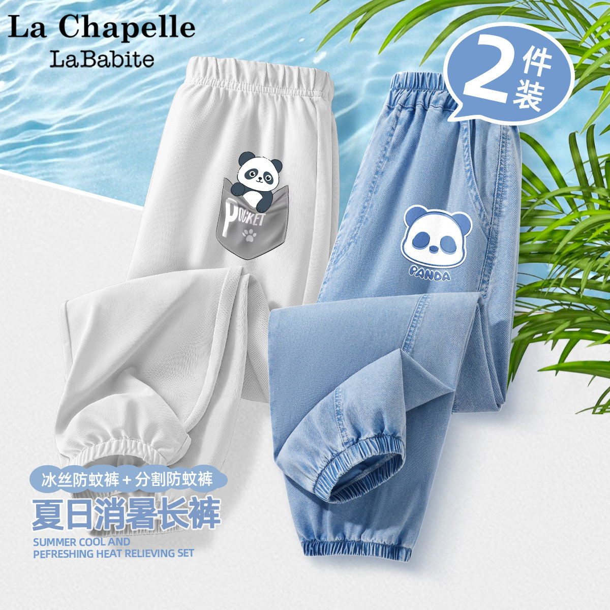 拉夏贝尔联名男童防蚊裤夏季童装天丝牛仔裤薄款长裤儿童夏装裤子